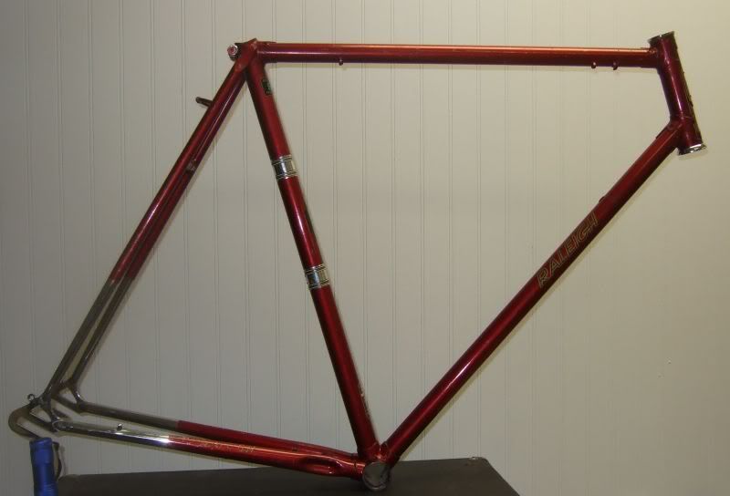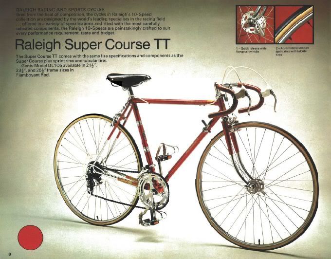 I don't mean to bore you all to death, but I like to research each of my acquisitions, and I thought I should share this little bit of Raleigh esoteria with you. One of my winter projects is a red Raleigh Super Course that I'm rebuilding: It's a Carlton 531 frame with fancy Capella lugs (just like my green 1973 SC). Apart from a general overhaul, I'm replacing the Huret DR's, and swedged steel Nervar Sport cotterless crank with a Shimano Ultegra 6400 crank and matching DR's. -I would have left it all alone, but the crank had become UN-swedged, and had to be addressed somehow. (I may attempt welding it at a later date, but for now I'll take the opportunity to shave a few pounds).