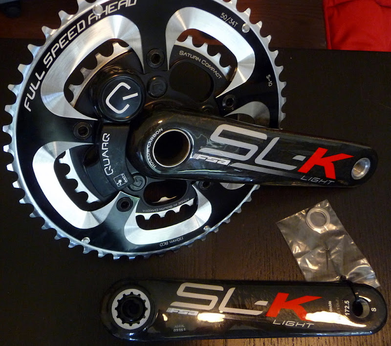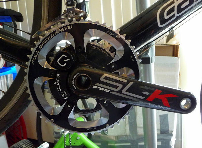 awwwww yea. Crankset is the FSA SLK Light w/Super Road rings. 50/34, obviously.