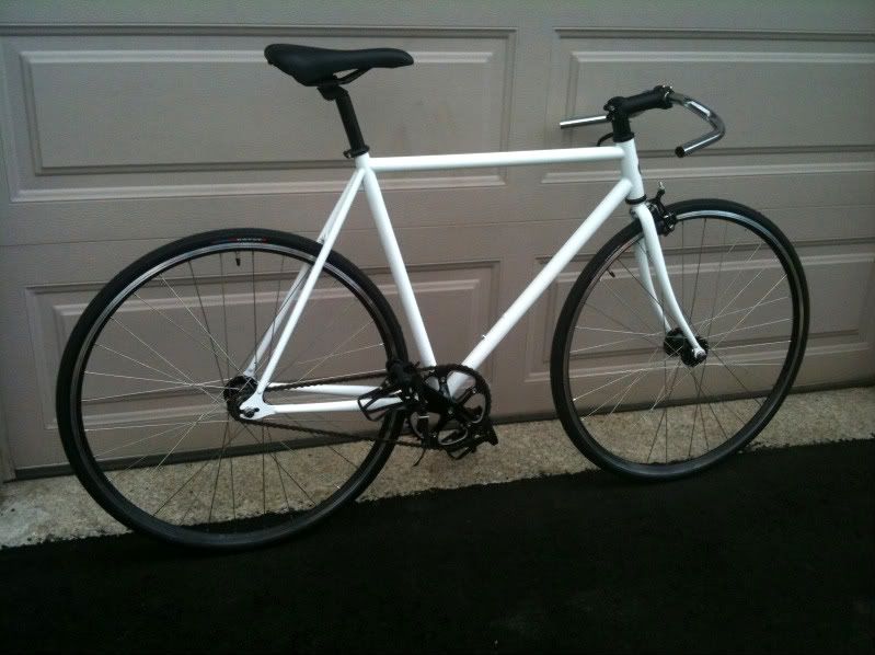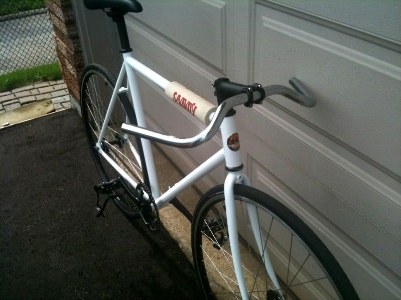 Still gotta finish installing the break, and grab some new pedals/cages and a saddle. Also gonna wrap the bars with some tennis grip I think.