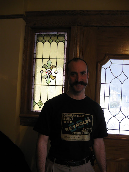 Here's a picture my wife shot last year on my birthday. Someone in the Classic and Vintage section of bikeforums designed and printed and distributed these shirts. We paid him to cover his costs. They are not available any more.
