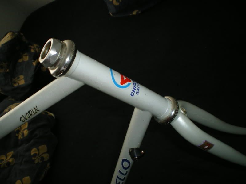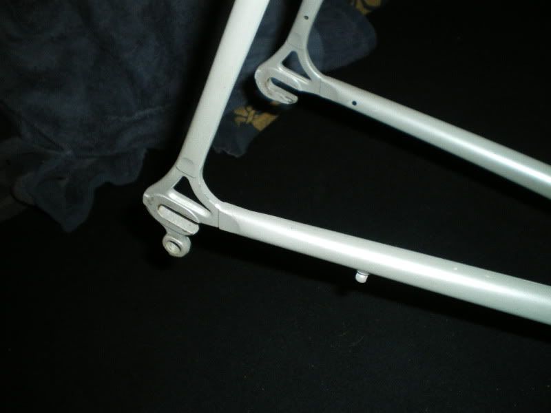 You can see the cable stops here, and you might notice that the one on the chainstop is very simple- the hole that goes through is the same width all the way, no tapering for a ferrule to rest in. The ones on the downtube are alright, I reckon:
