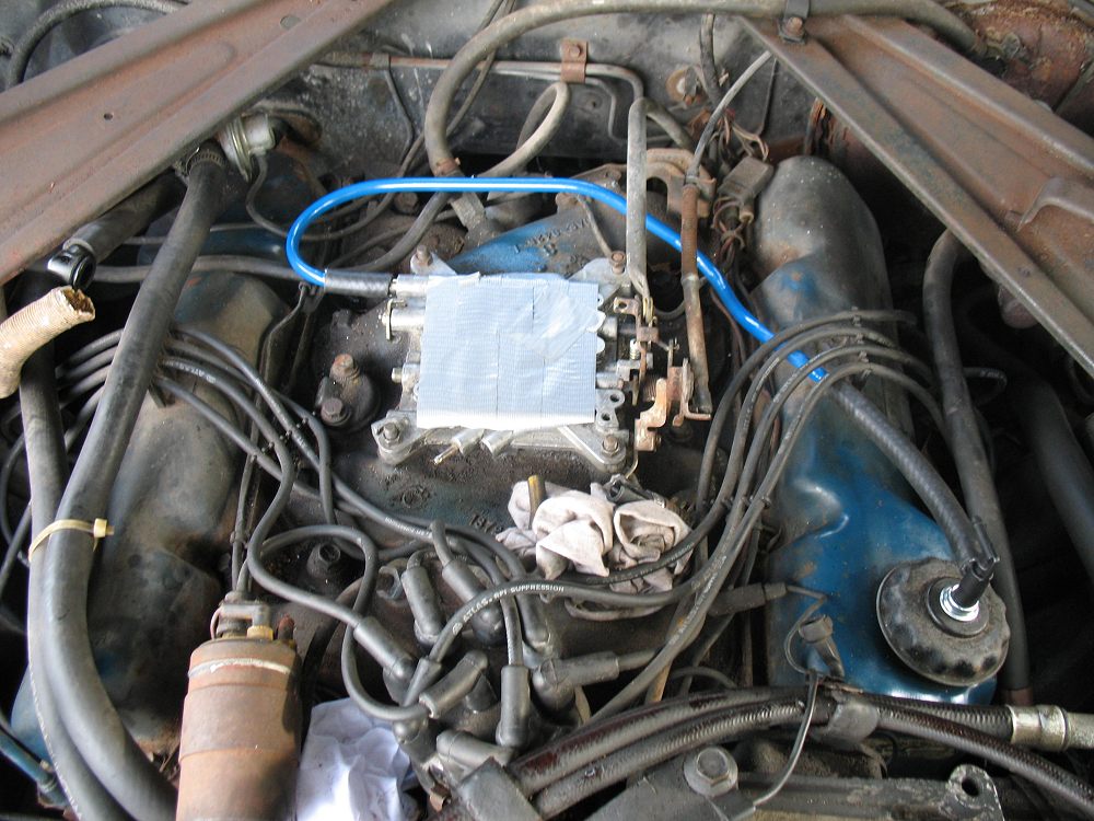 I copied the 3/8" design from the '78 and '79 400 CID's in the Lincolns, which run the Autolite 2150 2-barrel. The PCV valve on the Mustang was also swapped to the Lincoln-spec.: