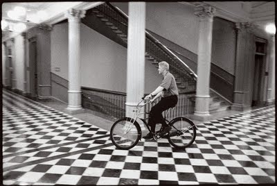 Is the photo a young and slim Bill Clinton riding a bike in the state Capitol? Was that at the exhibit you went to? Great photo!