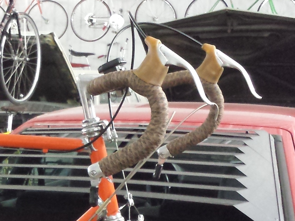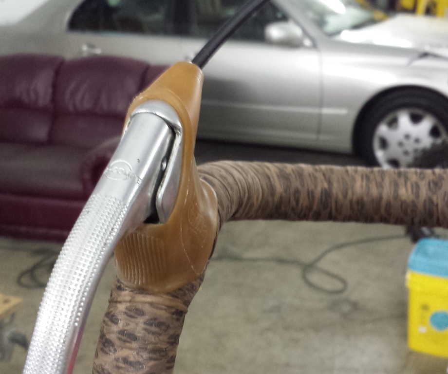3) I also post a photo of my Campy Record levers on my '72 Mercian Vincitore. I think these hoods were some NOS dia-compe I scored at the LBS a few years ago? I don't remember. They are a little large but they are very comfortable and don't squirm around.