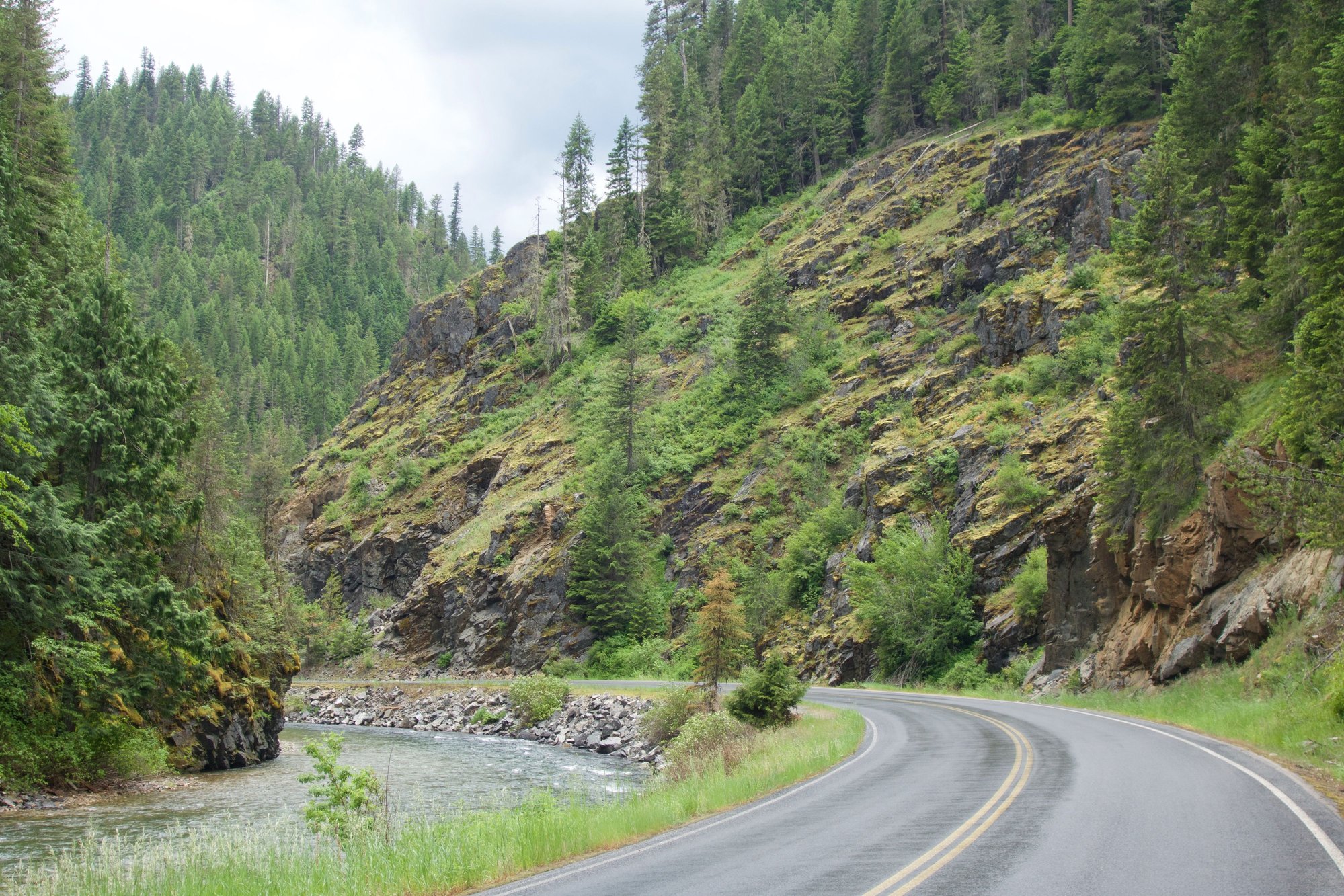 Gold Pass from St. Regis, MT to the ID border. The road becomes paved at the state line. The descent is nothing short of fabulous.