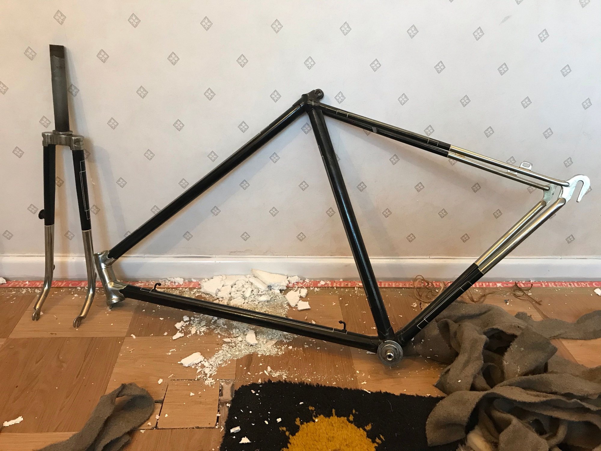 I can't really see any manufacturer markings. There is a small 7 followed by 7541 on the bottom of the frame and then again on the forks and then what looks like OLI8OI on the bottom of the bottom bracket.I wouldn't have put it past him to have painted it himself.