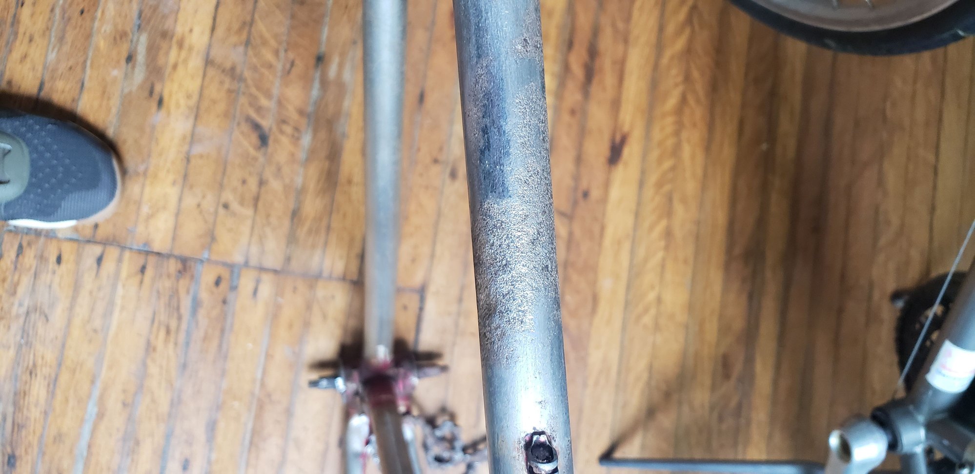 I like the ice pick test for testing the rusted areas. If the pitting doesn't exceed 30% ( pulled that # out of my butt ) and you're a beanpole, tall but skinny, I wouldn't be afraid to do some casual riding on it. NO loaded touring or anything like that LOL. I'd just clear coat it as is to slow any further corrosion and show off the "patina", put it together to ride and keep a CLOSE eye on the top tube for any signs of deformation while you shop for a better frame.