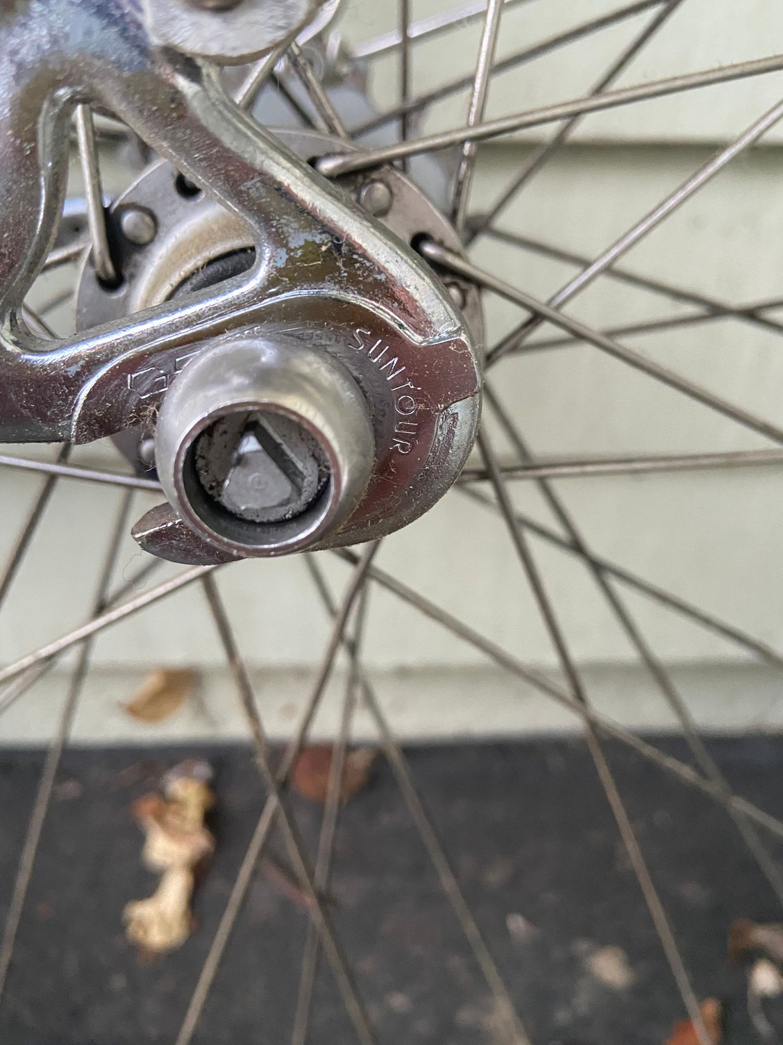 Suntour dropouts. I couldn’t get a pic of the fork DO. Stupid security not-QR. If anyone has the socket may I borrow it for 30 seconds?