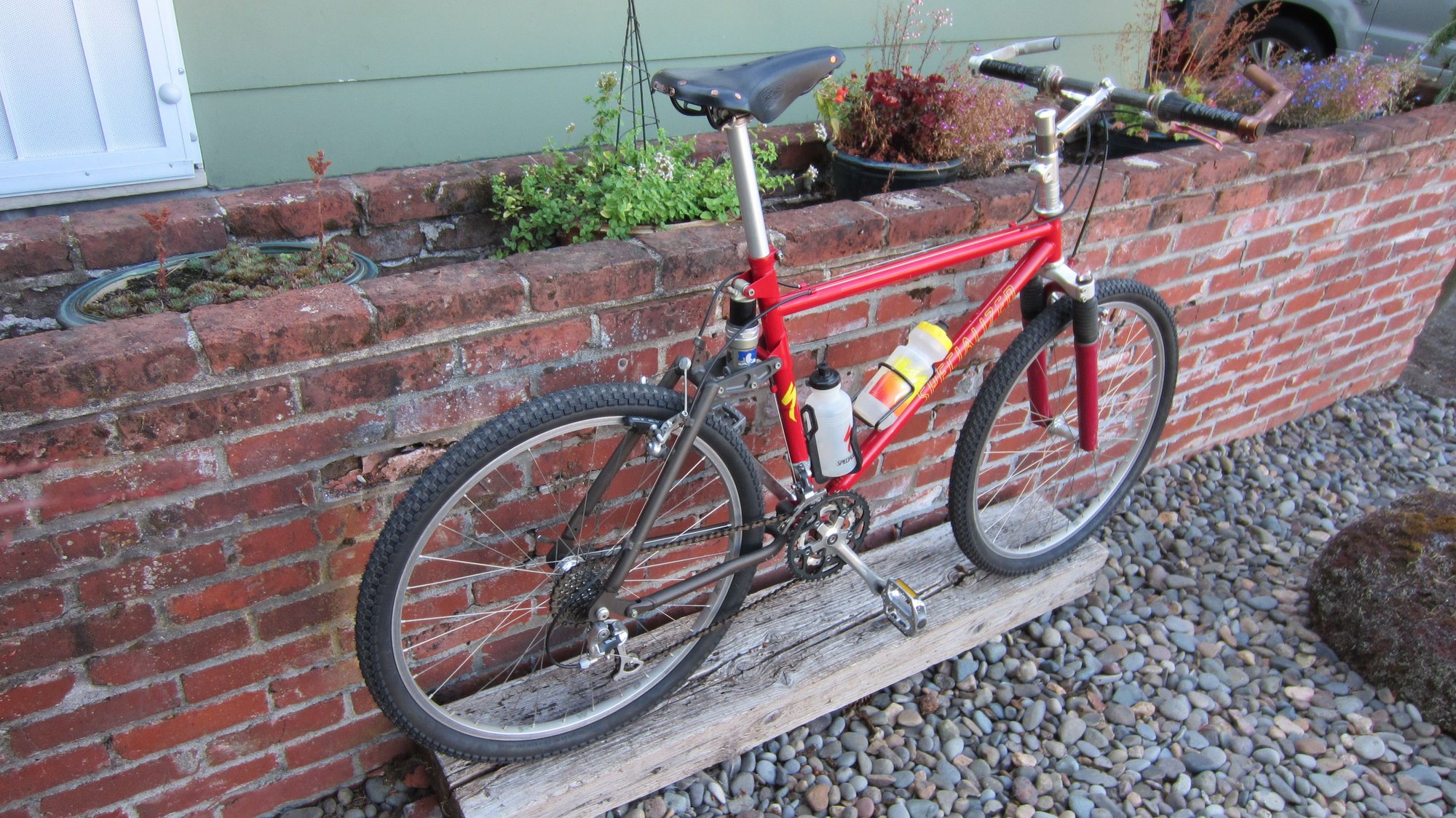 It cleaned up well enough, new tires, soaked down the drivetrain with PB and it came around, Brooks, raised the bars and added flat pedals.