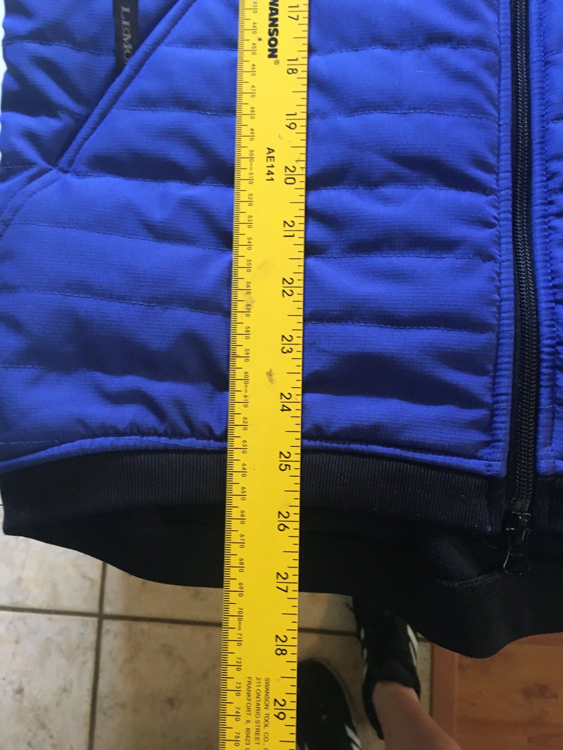 Vest - 21 PtP, 27 length. Quilted and fleece in back.