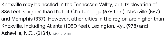 Surprising that Atlanta is higher than Knoxville. Then again, we're by a major body of water, and Atlanta has no water, so that kind of checks out.
