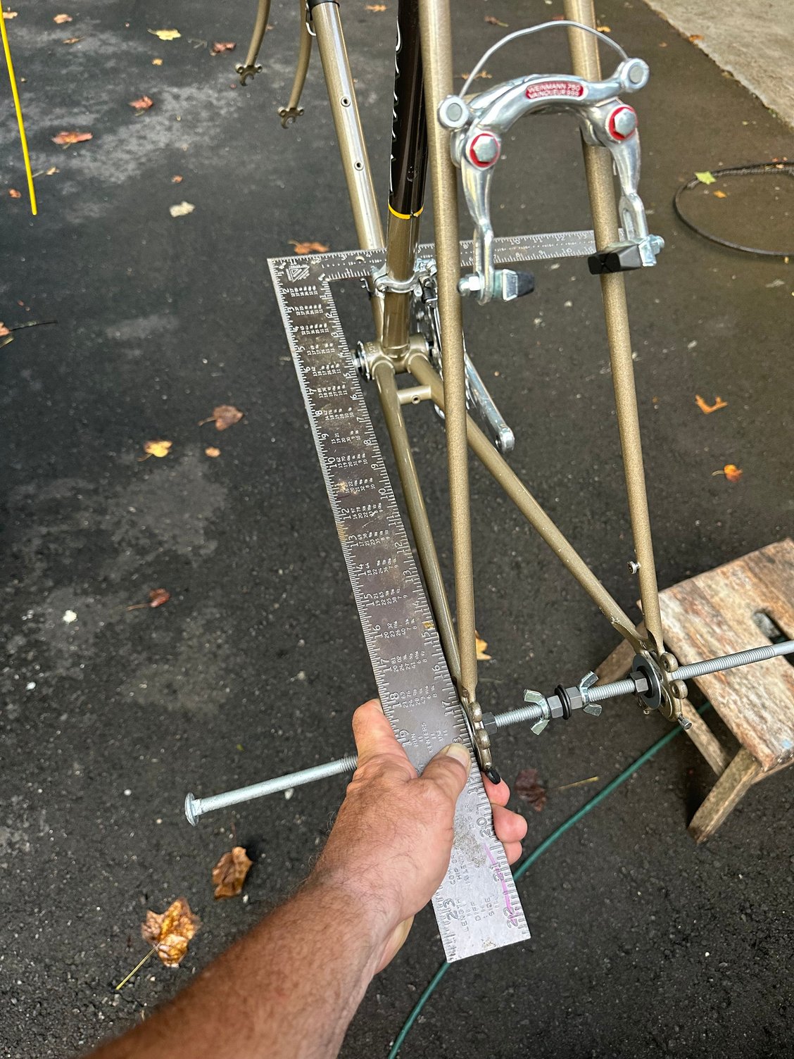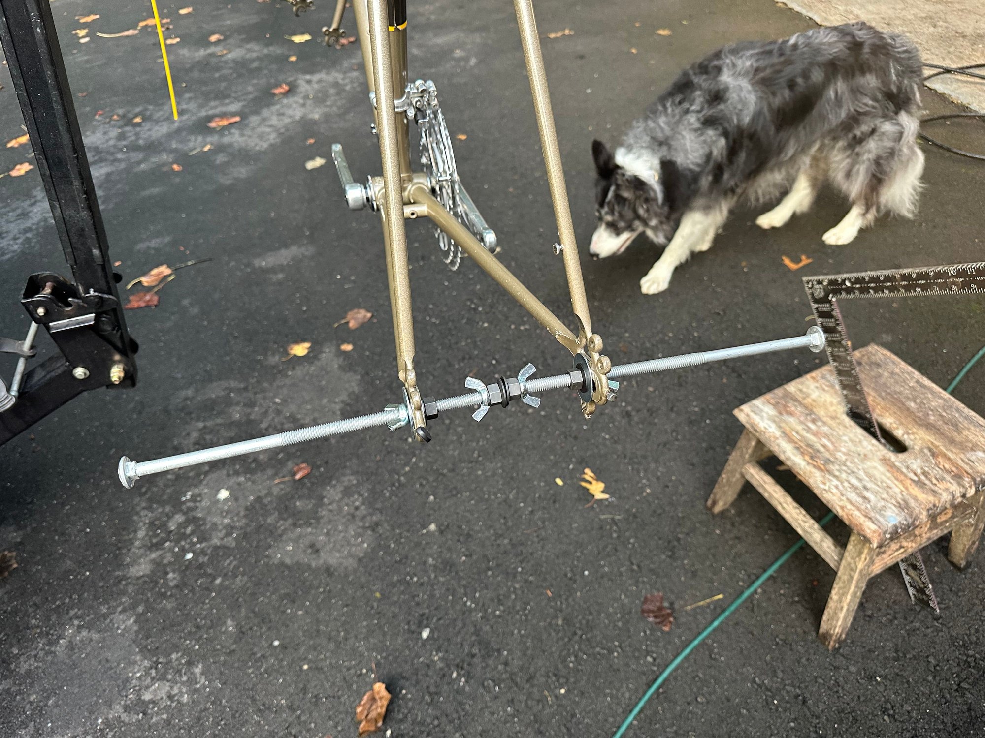 The rear dropouts looked a bit suspect to me so I fashioned a DIY alignment jig.