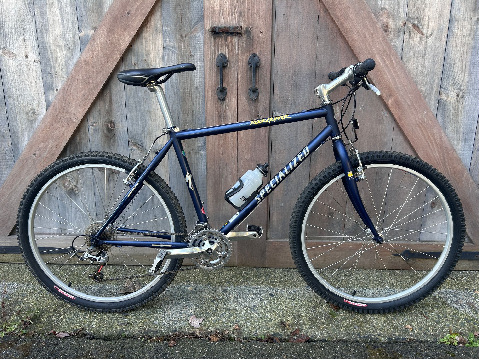 Ok, so here is my (I think) 1996 rockhopper. This was an impulse facebook purchase. All original except for the saddle. I liked the vintage vibes with the bit more modern flairs like the 1-1/8" threadless set up and v-brakes. I have a shorter stem on the way and some bars with some rise. I want to get some quieter and smoother rolling tires. I love gum walls but I think black would look better on this one. Maybe some silver or accent colored cables. Any thoughts or ideas?