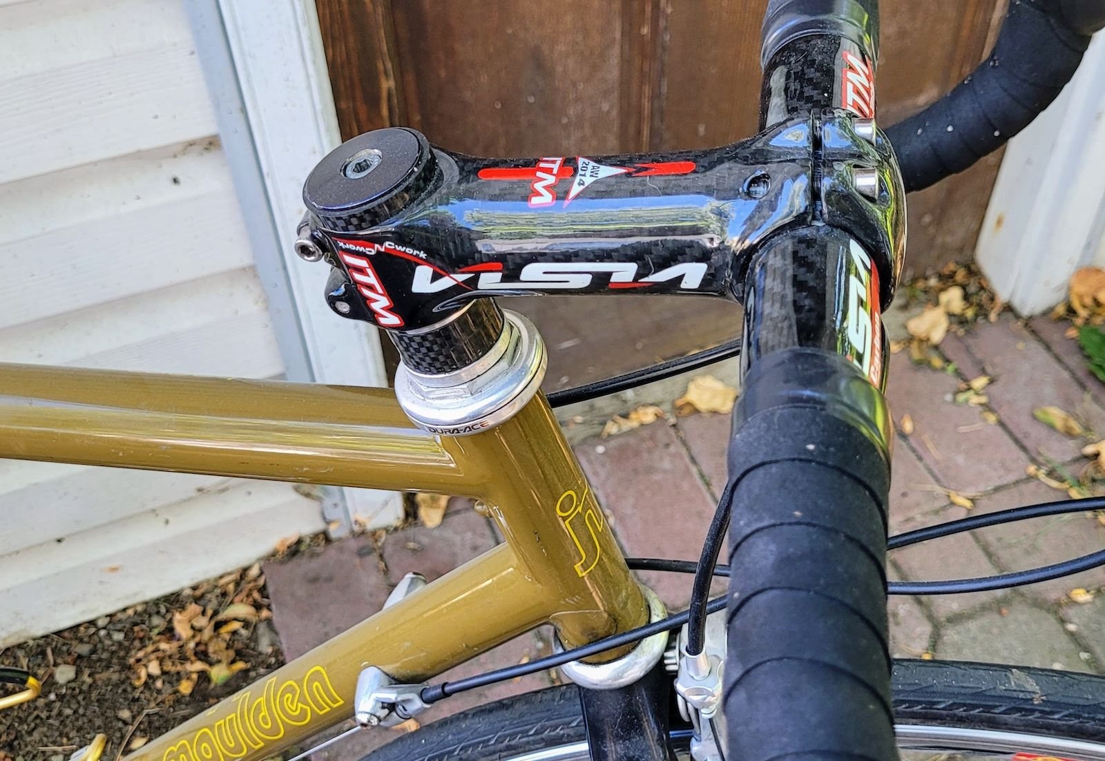 Wild finds today on Pinkbike. There are a couple of Moulden's listed right now. This Moulden Team road bike is available in Kelowna BC. Modified by the owner for a threadless fork. Very pretty!