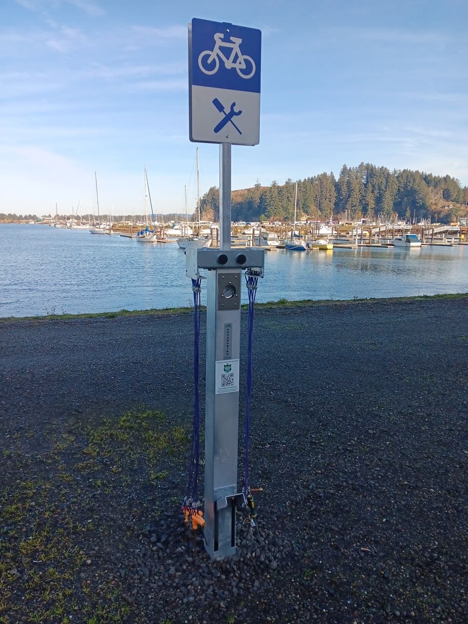 After having to evacuate yesterday due to tsunami, I pushed myself extra hard today and did 60 miles. The surprise of the day was discovering the bike work station that I must have rode by at least 100 times and didn't know it was there. Of course, it's clear across the parking area from the road and I only discovered it today because I needed a break and saw the picnic tables in the same area. Cool