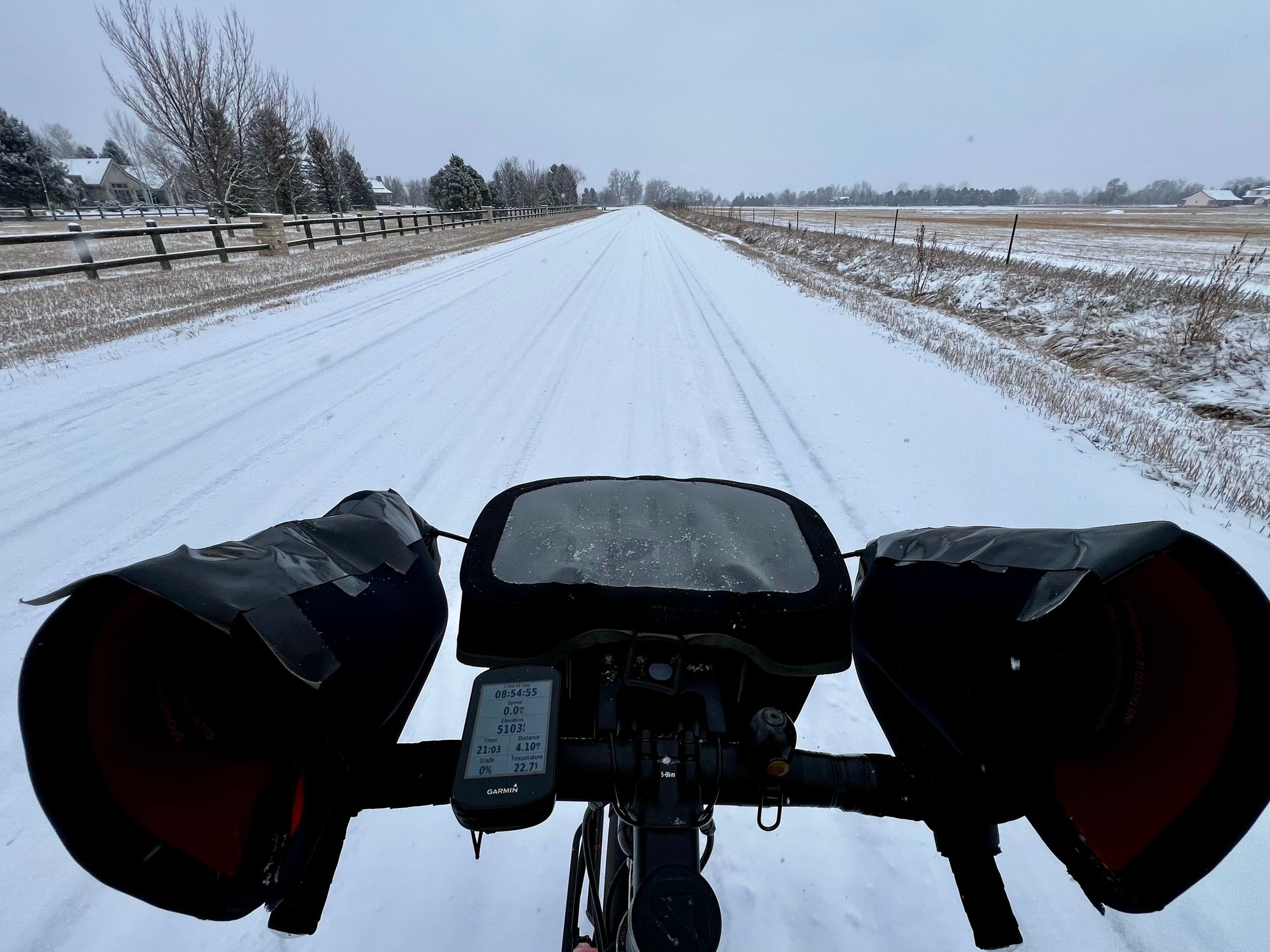 This morning, 3 inches of fresh snow, 22°F/-6C, Schwalbe Winter Plus studded 700x40c did the job. Had to pay attention more than I expected, as conditions changed from packed dry, fresh and loose