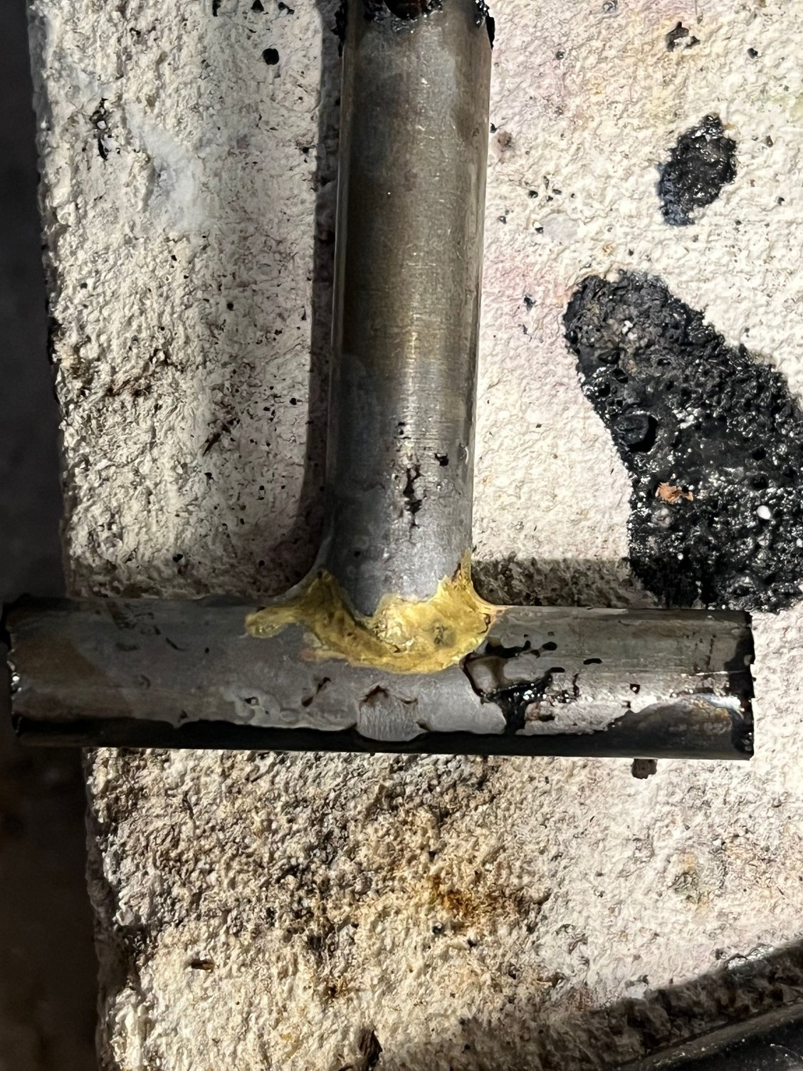 Yeah, on that one I flowed/filleted in a single pass mostly - I sort of dropped a big blob then pulled it out a little with the torch the filled up all at once, so hopefully I got good fusion but unsure. The pre-fluxed rod I have is thicker and a little harder to control.