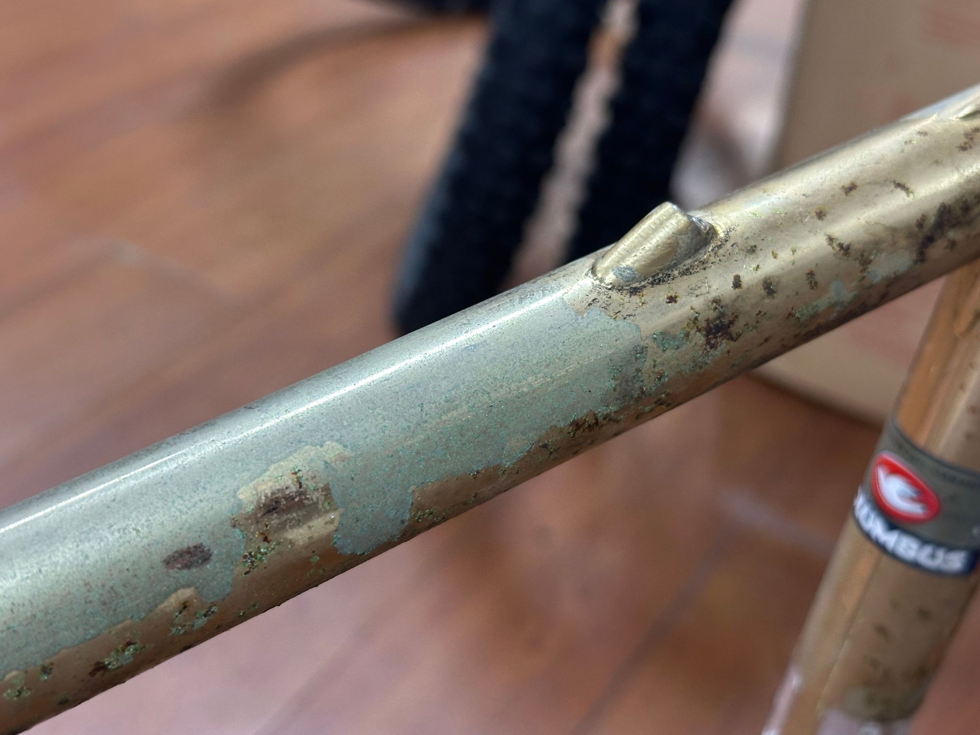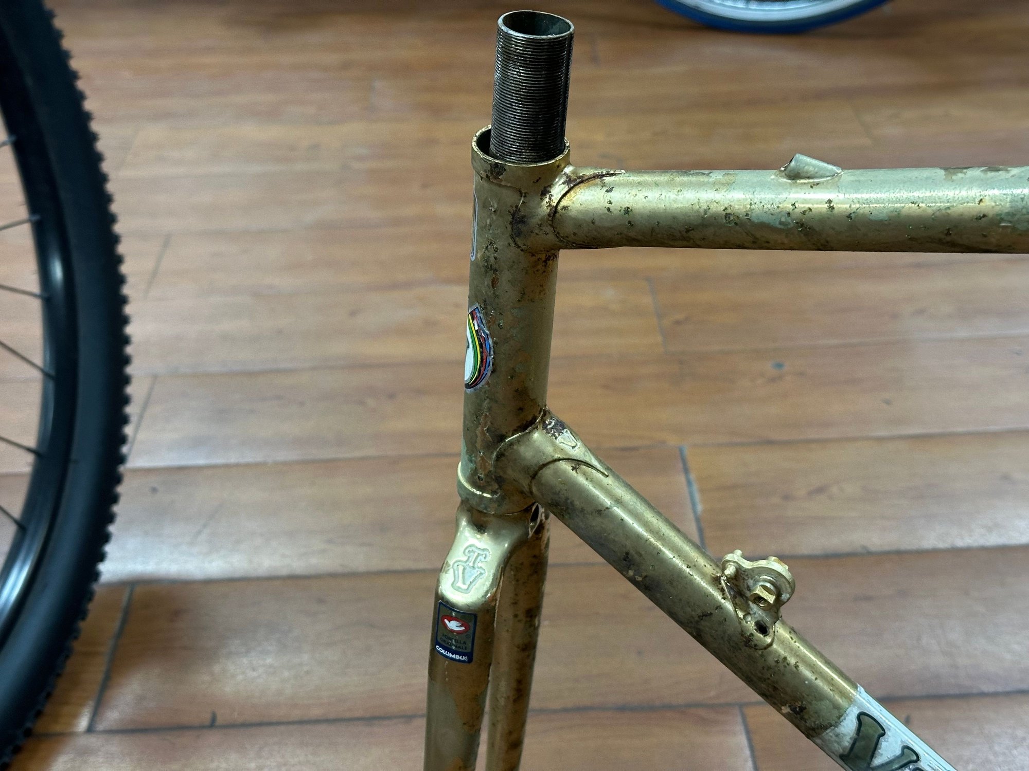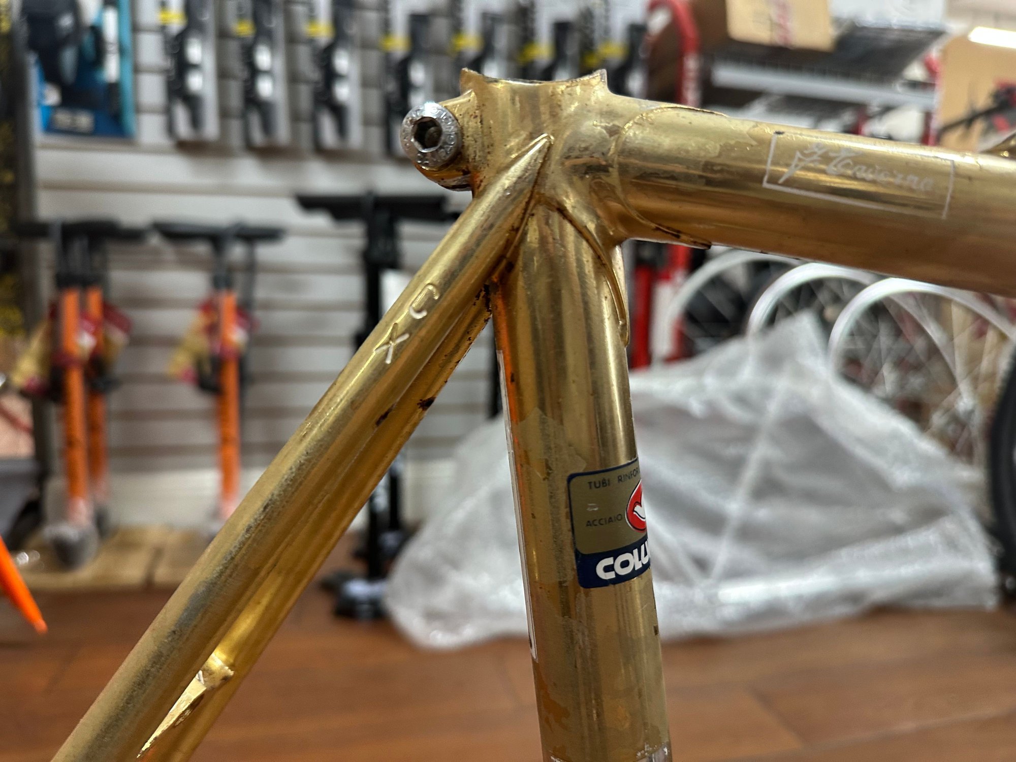 really convinced this Vetta is some kind of contract build by Benotto. It has the same tubing, internal cable routing, braze-ons and dropouts as a Benotto 5000. With all the other Benottos in the room, it stands to reason that this doesn't fall far from the tree.