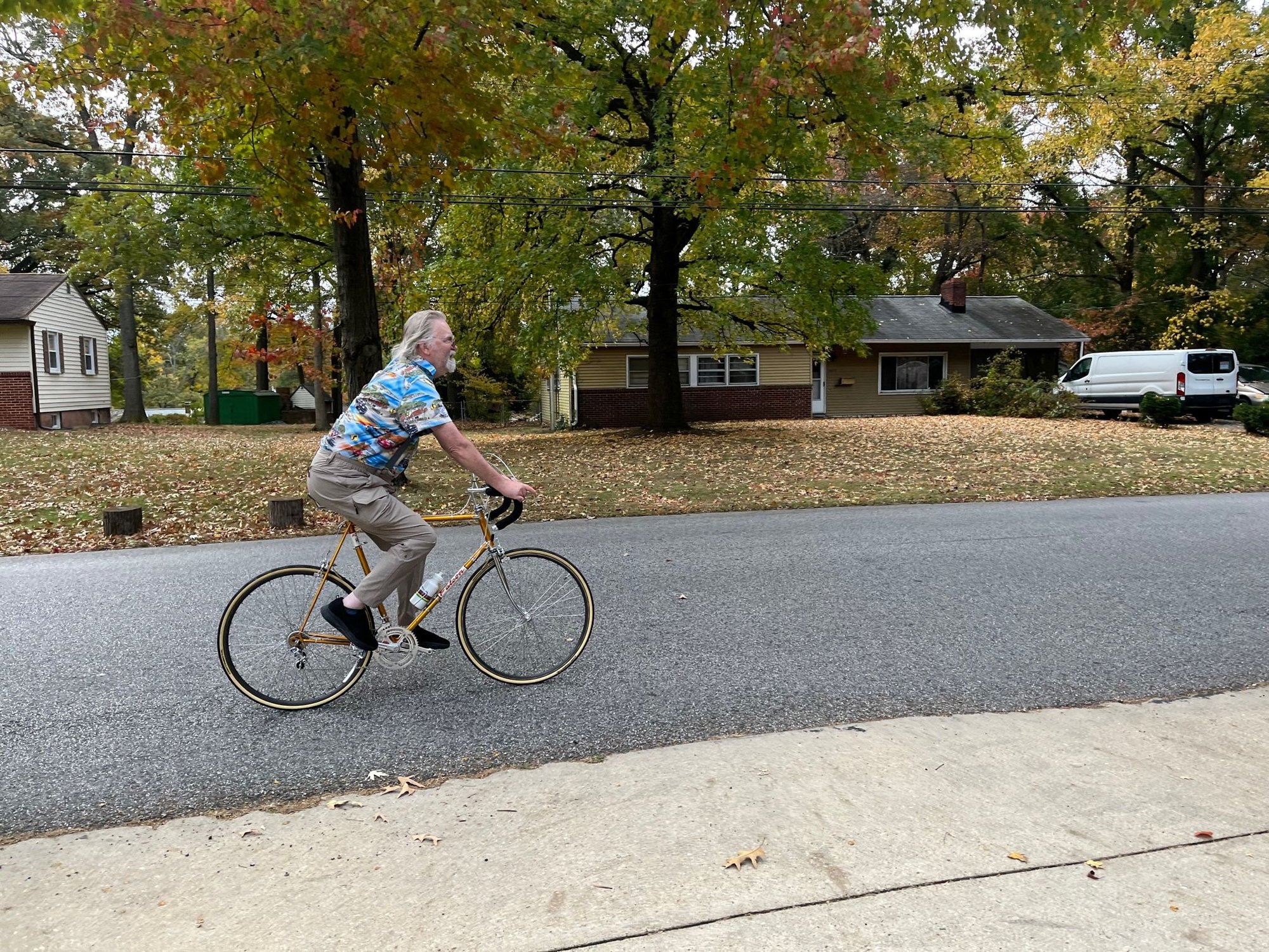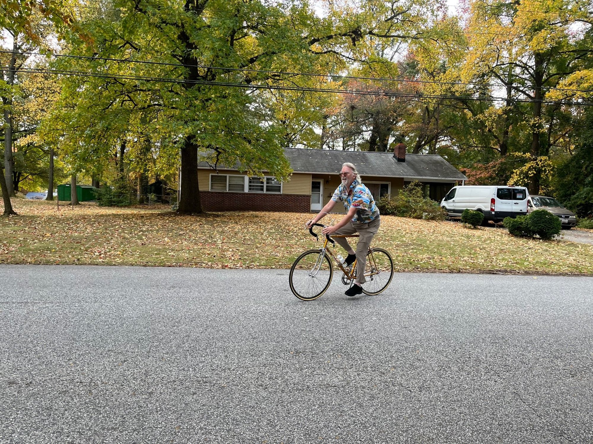 Much later, the Falcon still here and, as I was exploring shipping options, the owner was in town (flying, alas) for an overnight visit. So, this AM, he got to ride his bike a few hundred yards, and pronounced it "perfect". Made me feel good to hear that!