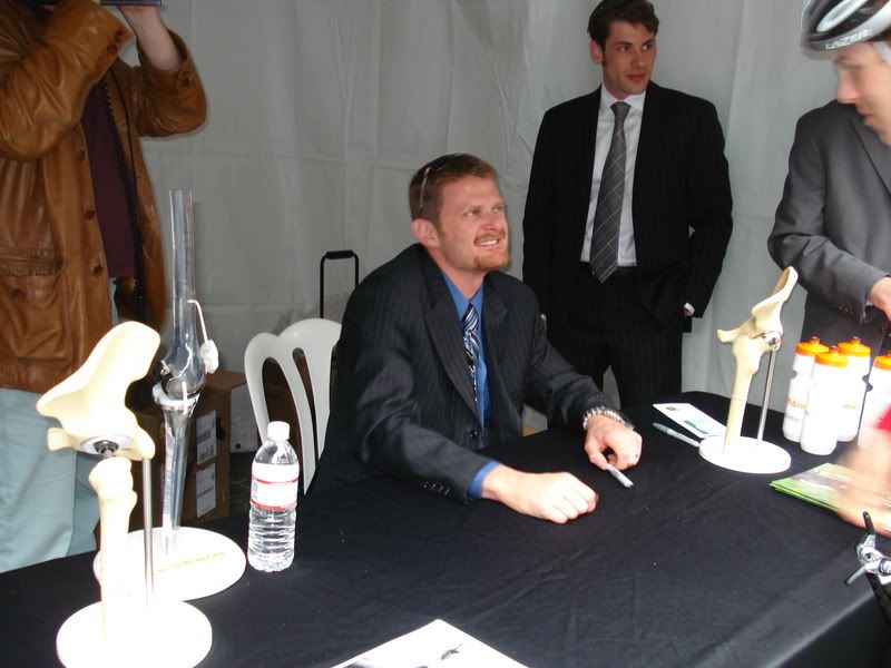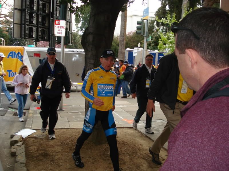 Hey, it's defending champ Floyd Landis! Where's your bike, Floyd?