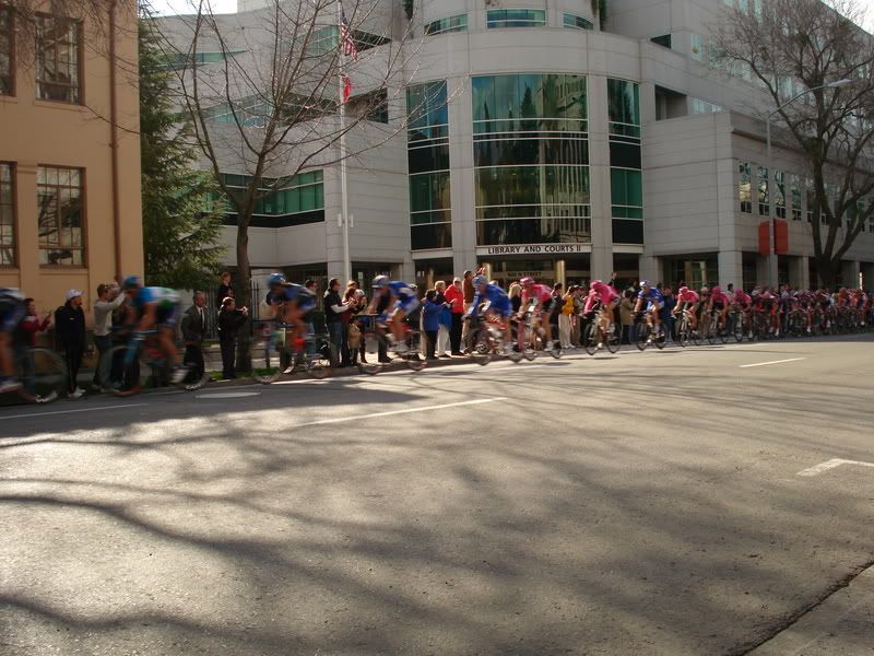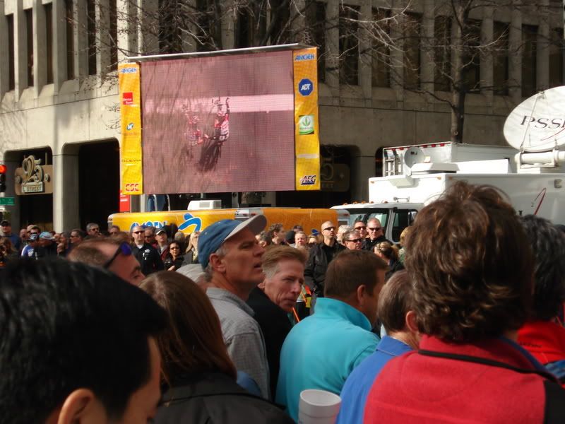 The crowd was thick at the finish, so I mostly saw it on the big screen set up at 10th and L, kitty corner from the State Capitol: