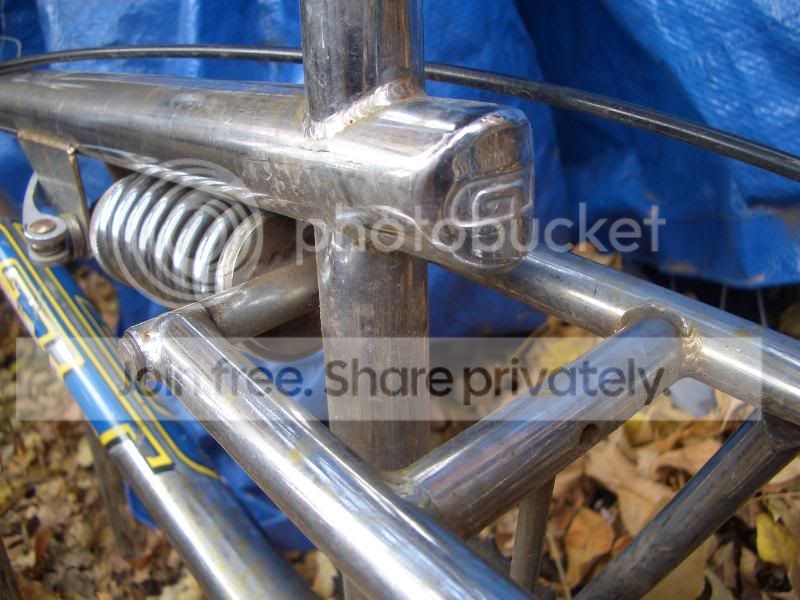 I Love vintage GT MTB's and own several, but I have never seen a GT BMX bike w/ an old school stem/neck like this, stamped bars, stamped seatpost, metal head badge, and a QUICK RELEASE SHOCK/SUSPENSION OF SOME SORT....