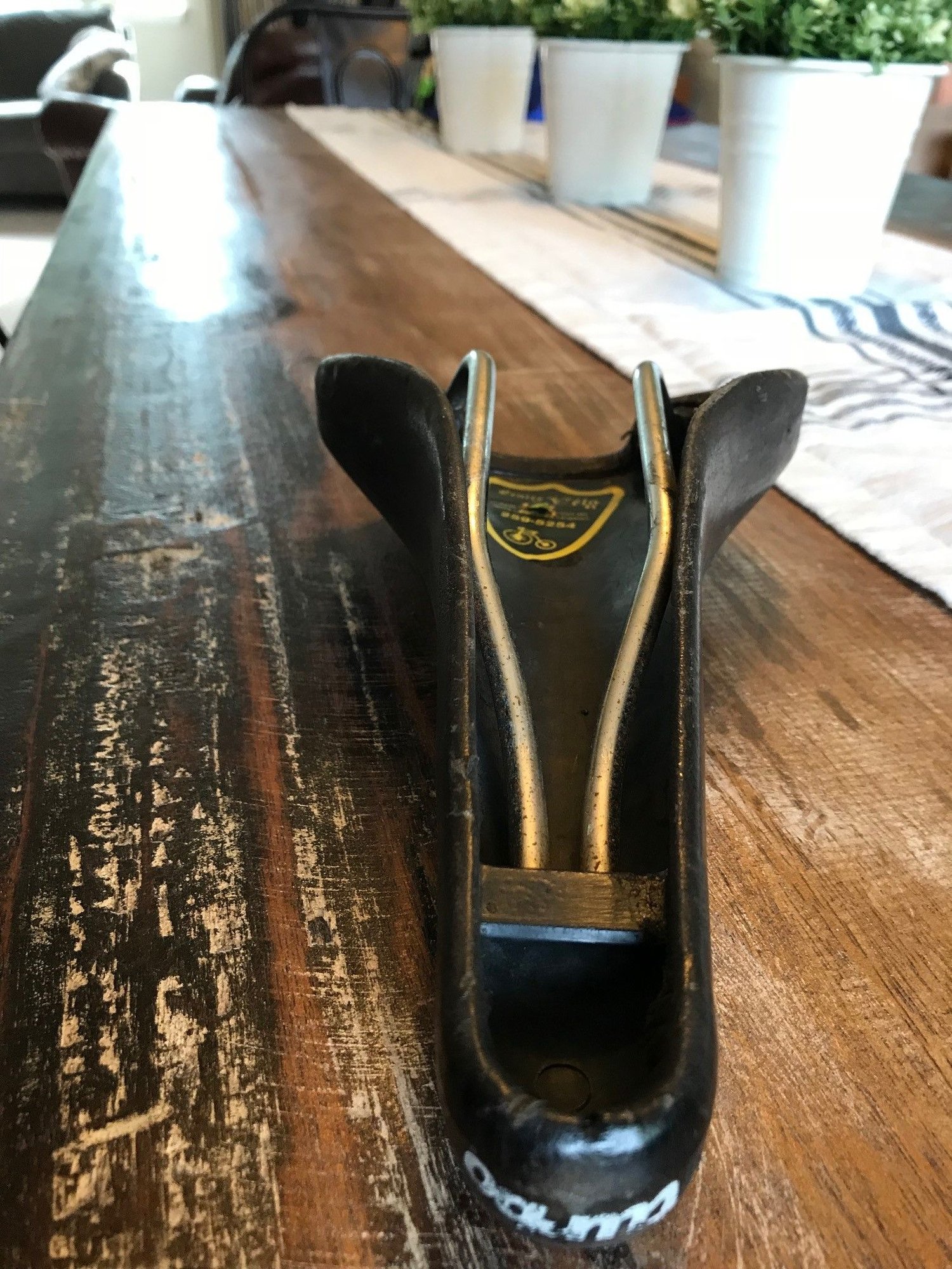 Saddle came off an '87 Marinoni Special and has a Montreal sticker on the underside