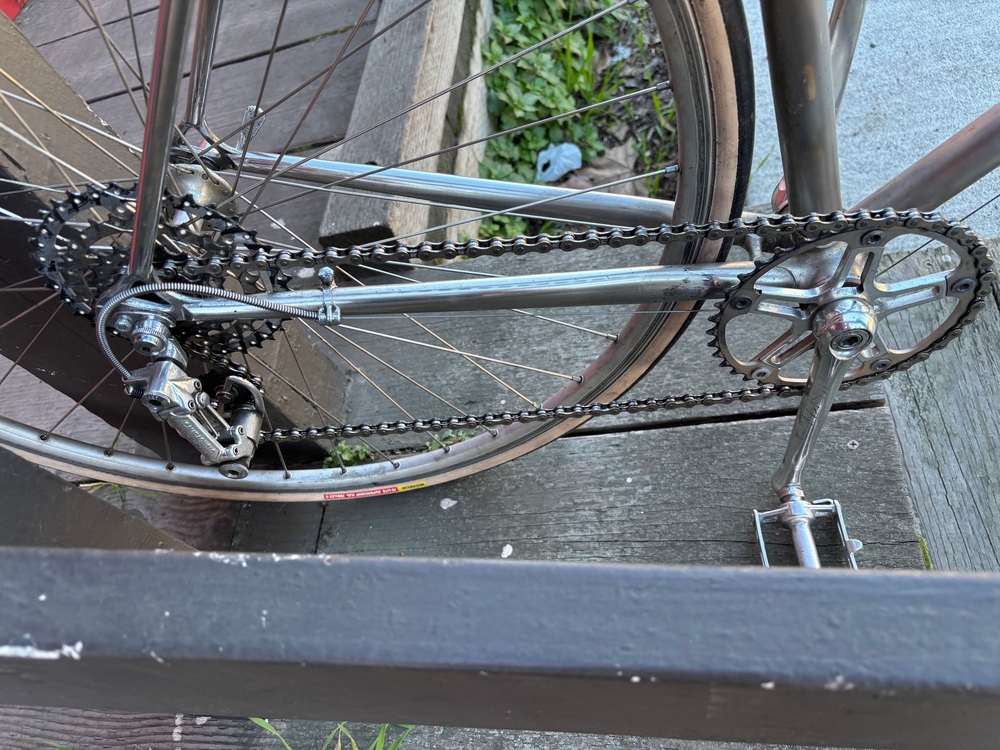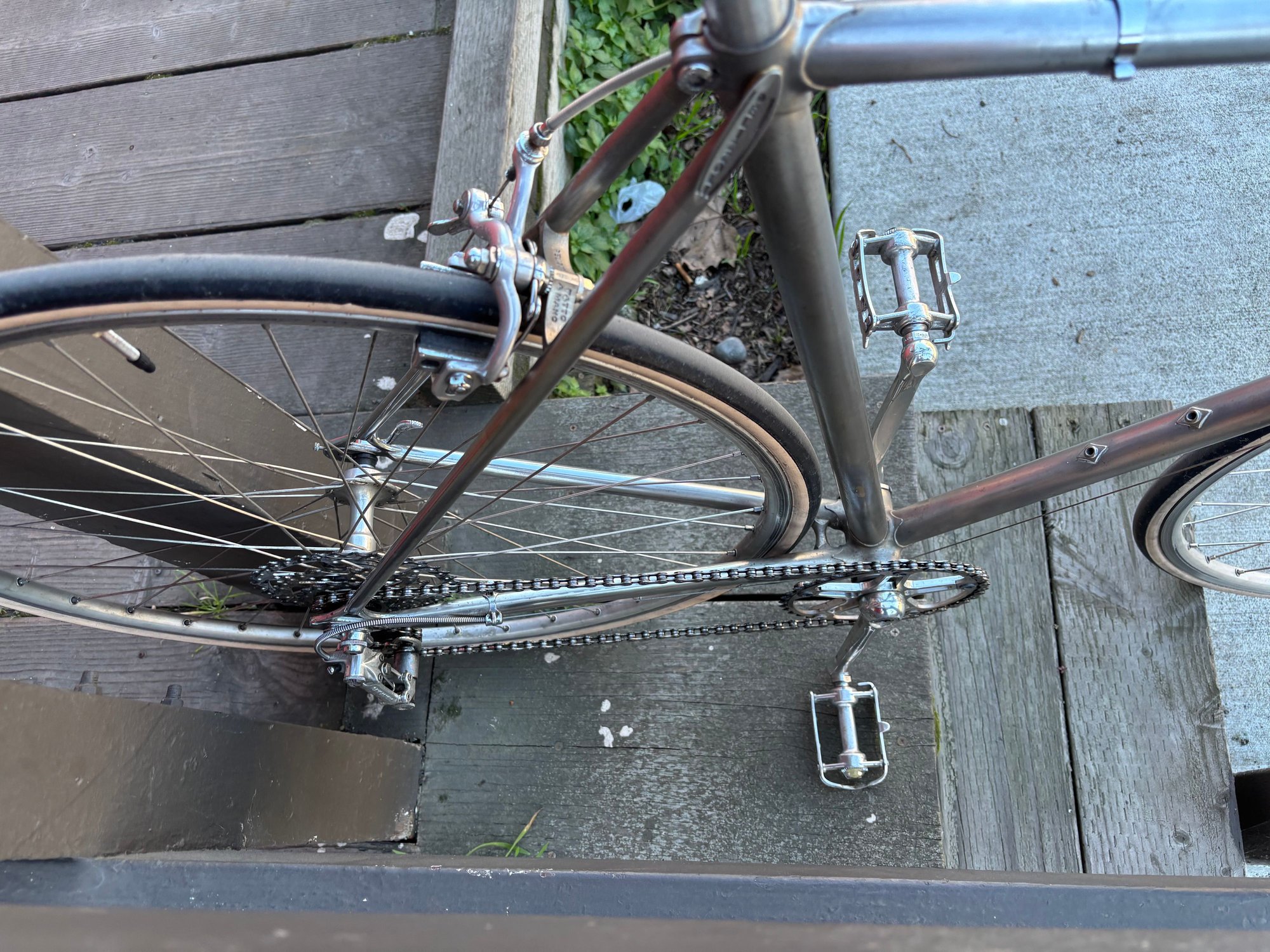 locked outside of the co-op last week. So kinda “spotted in the wild” too. This is a very inspiring build. I’ve been wanting to do a chrome/“brushed” road bike for a little while. It’s not flashy but it is elegant. literally everything is tasteful. the drive train is what was the most impressive. A topline crankset with a single chainring, a VERY wide range 6 speed cassette, and a Nuovo record rear derailleur. https://cimg7.ibsrv.net/gimg/bikefor...c75451f70.jpeg https://cimg8.ibsrv.net/gimg/bikefor...6f98b03e1.jpeg https://cimg9.ibsrv.net/gimg/bikefor...f5c7b1f88.jpeg https://cimg0.ibsrv.net/gimg/bikefor...d8b22c864.jpeg |