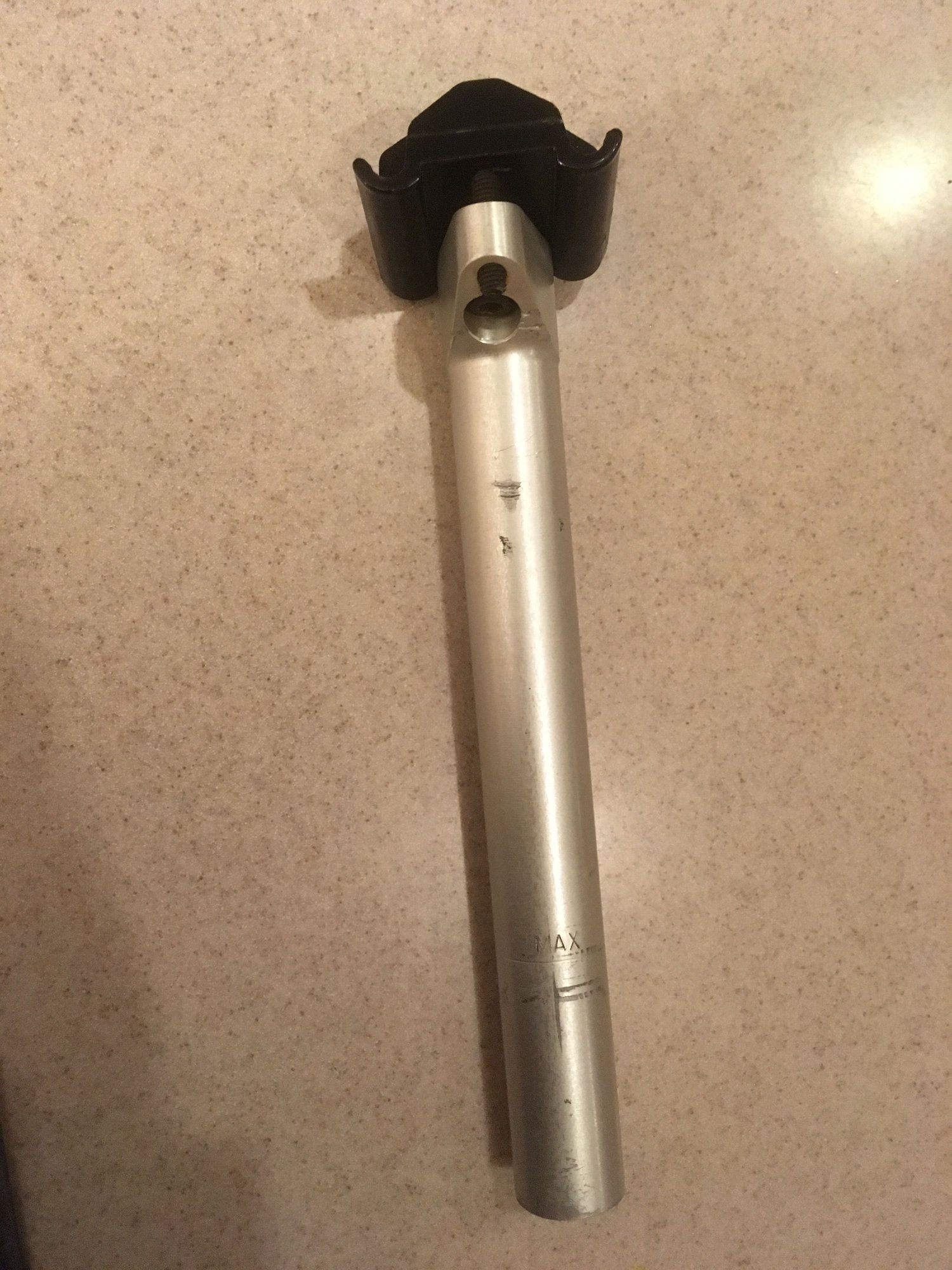 This seatpost came with a Tommasini that I recently acquired, although I doubt that there is any logical connection between the frame and the post. I don't recognize the style or logo. The frame is approximately late 90s (90 95 12 on the bottom bracket,, but not sure how to interpret those numbers) but had a mix of mostly Shimnano tri-color parts installed. The post is 230mm long excluding the clamp assembly, and weighs about 200gr. including the clamp assembly, which seems pretty respectable. The logo is located on the front of the post, about 4cm from the top, and the 27.2 size is stamped immediately below the logo so all of that is still visible with the seatpost installed.. Unusual 2-bolt design with the smaller, rear-most bolt (actually, more like a headless set-screw) just serving as a rest for the rear of the clamp assembly to adjust the tilt.https://cimg7.ibsrv.net/gimg/bikefor...998c347b2d.jpg