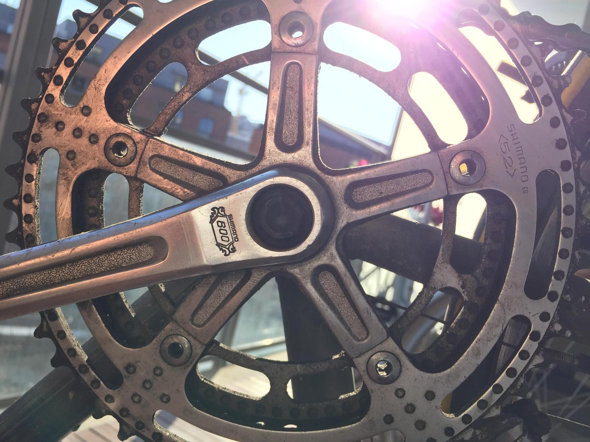 The Shimano 600 Arabesque crankset really caught my eye . When Shimano did the Arabesque group they were really making some beautiful stuff . I got a hold of a rear Arabesque derailleur for one of my first C&V builds , bummer was though it would not fit on the frame I had as I recall something about the spur stop .