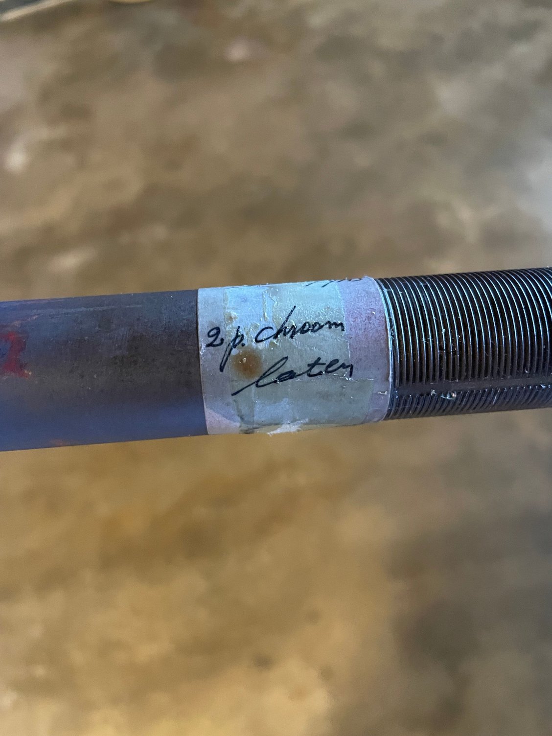B1110 - USA - known, BAZ/YMS - unknown, 2p. chroom - frame chrome pattern, later - frame repainted in EMC (that was the point!), K - the guy who built the fork. Laten=let it be/leave/remain So leave the chrome on the 2 p (patten = drop outs poten = (fork) legs) take your pick :) |