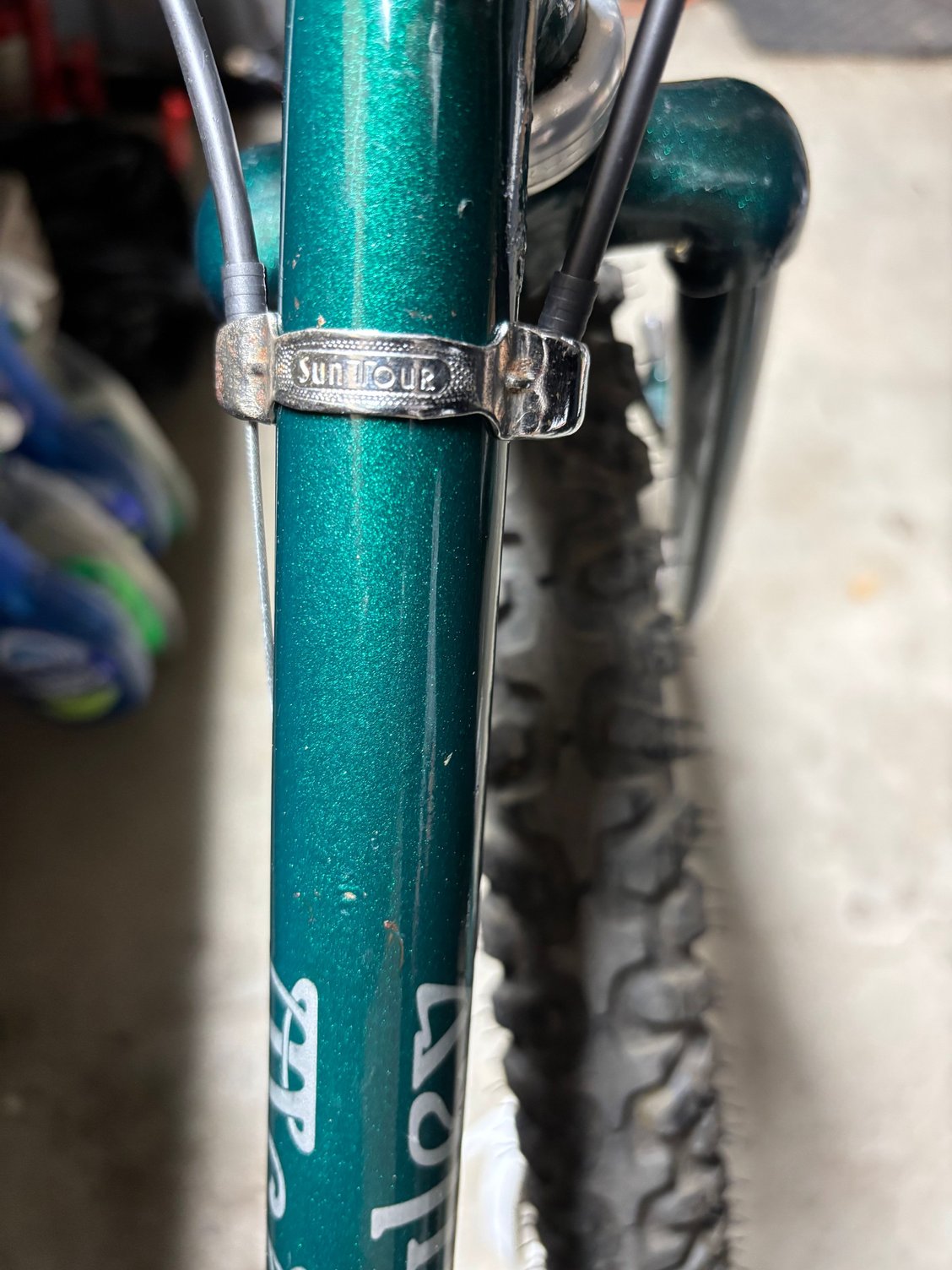 I went down to the co-op and went hunting. I found the top guide! But no luck on the bottom guide. I asked my buddy who works there if that was something that ever came in and he opened up his drawer and tossed me one from across the shop. Shortstop to second base style. Bad picture but good vibes. (I hate this phrase for being so overused but it’s perfect here). With some creative routing. I was even able to keep the right side rear and left side front without crossing the cable underneath the downtube! I’ll post about that later