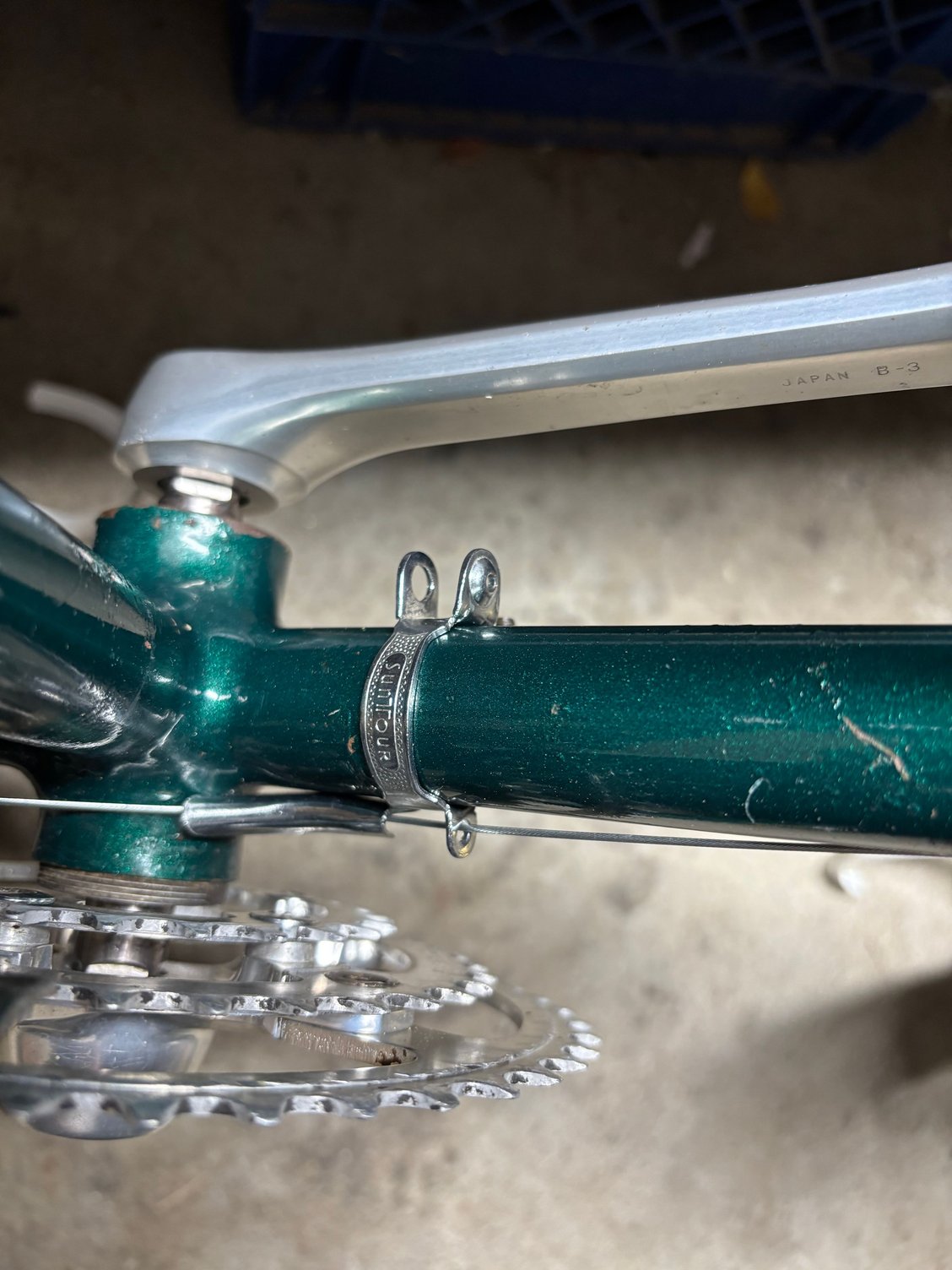 The ugly: If I pedal while in a turn, the crank bottoms out with a horrible scraping thud and I have a moment of flight. At this point I’m lucky I haven’t gone down. I want to keep the bike period correct but 170mm cranks seem to be pretty sketchy. I don’t know what to do yet, but will certainly ask around and look into options further.