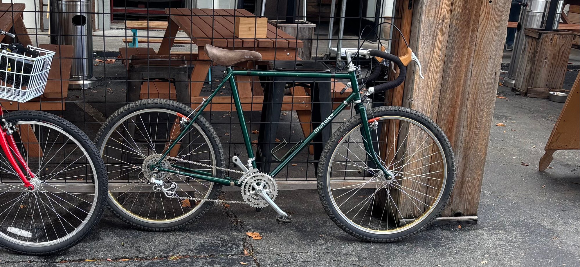 And let me tell you, I’m glad I did. This bike rides like if an old school monster truck with a 545 big block and a Cadillac had a baby. I can’t express how perfect the gearing is. Or how comfortable I feel on this bike. I know there is a lot fancier out there but man, I am so very, very happy with how this experiment turned out. French fit works here! And I’m so excited to be able to ride in the rain and go off into the parks! Here it is on the shake down ride to the cafe.