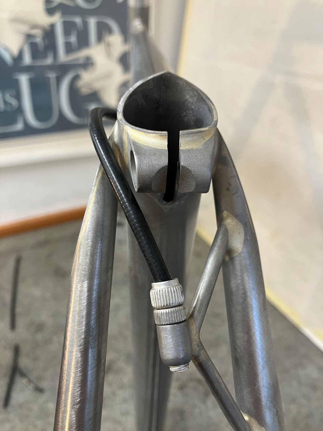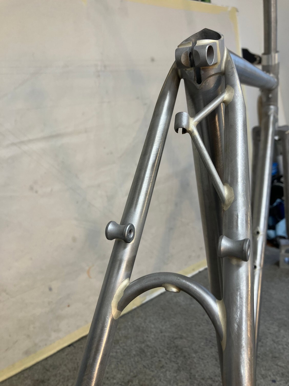 Love the quirky pieces. Rear cable stop, bosses on the top tube (Tool Kit?)…the way the down tube stops are attached. Beautiful.