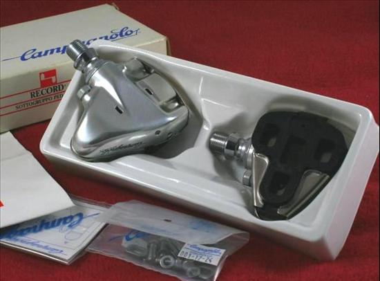 http://www.velobase.com/CompImages/P...DD5DA5090.jpeg When Look first introduced their clipless pedals they created such a hit that Shimano and Campy were caught with their pants down. Look was very protective of their patents and both Campy and Shimano ended up selling Look-built pedals rebranded as their own (the aforementioned Shimano 7401 and Campy PD12-RE). Neither company was particularly happy with this arrangement, and each decided to independently develop their own clipless systems to avoid Look's patents. Shimano came up with SPD, and Campy came up with SGR. The SPD system caught on quickly; it was light, unobtrusive and worked well. SGR failed on the market; the pedals were heavy and the clipless mechanism was less reliable than either SPD or Look and was soon dropped. |