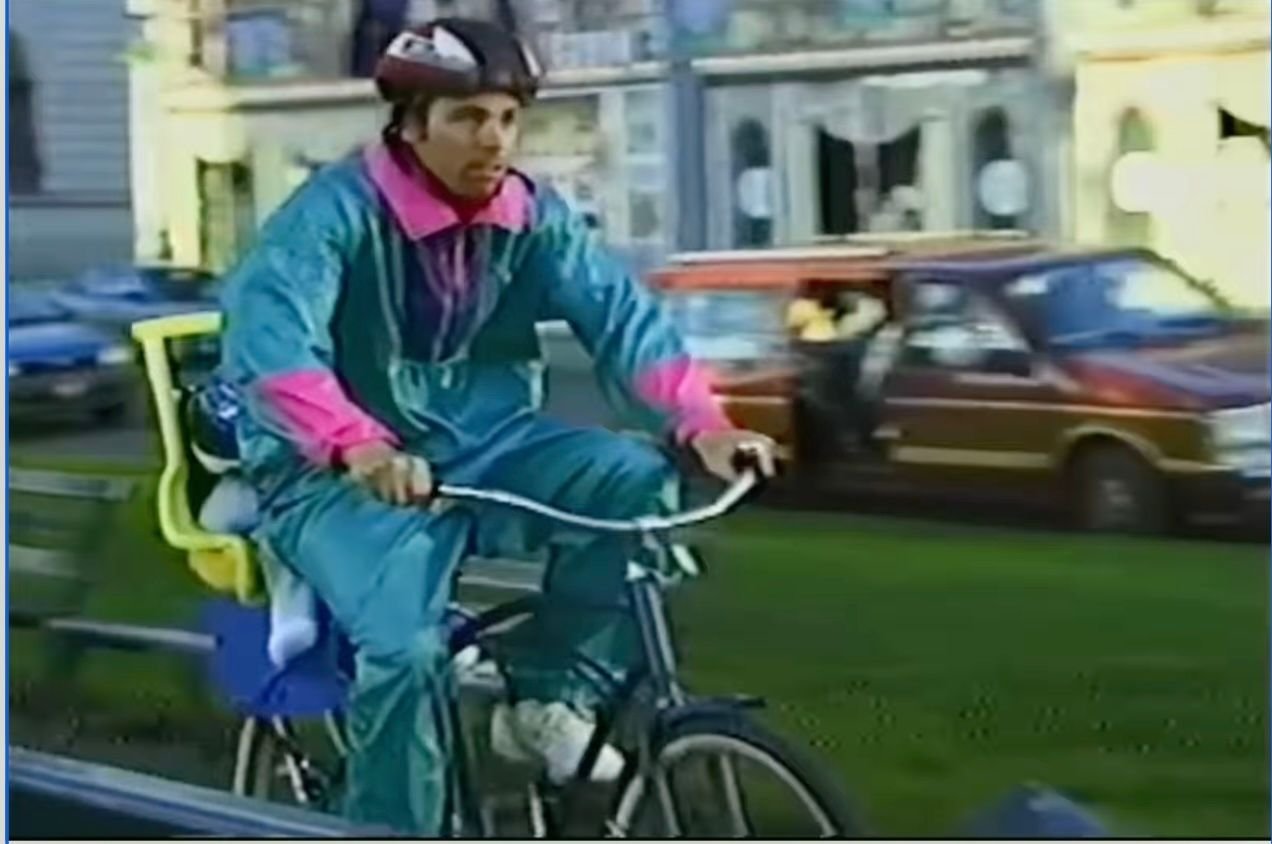 This is the closest I could find. While the music of Grandmaster Flash was significant to my teen years, he is not riding a bike here...