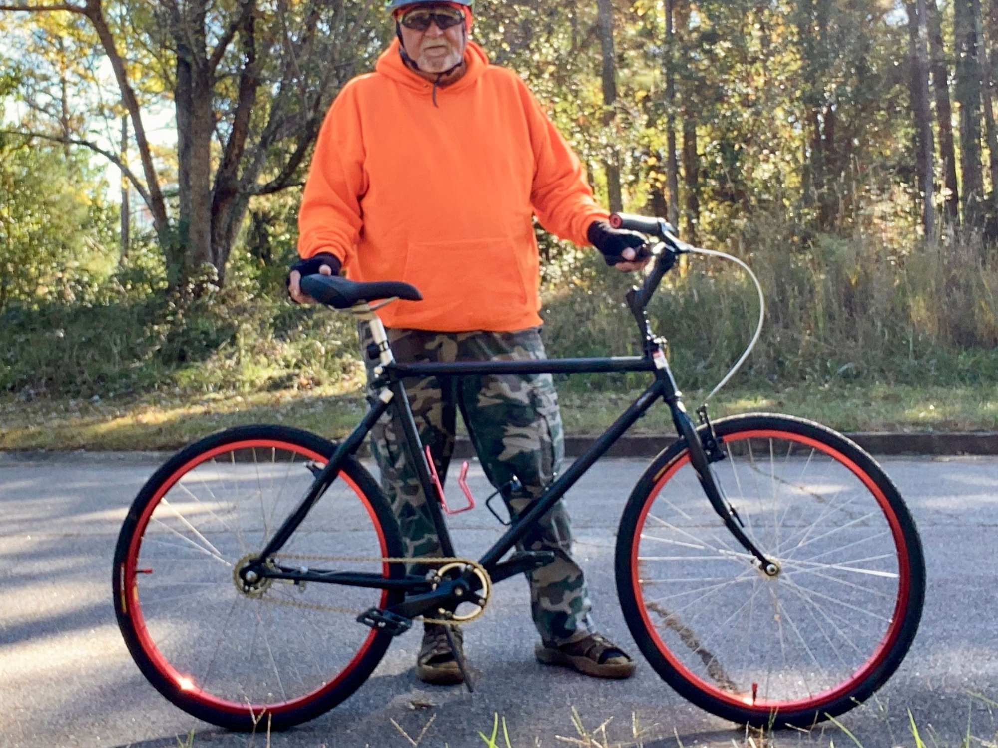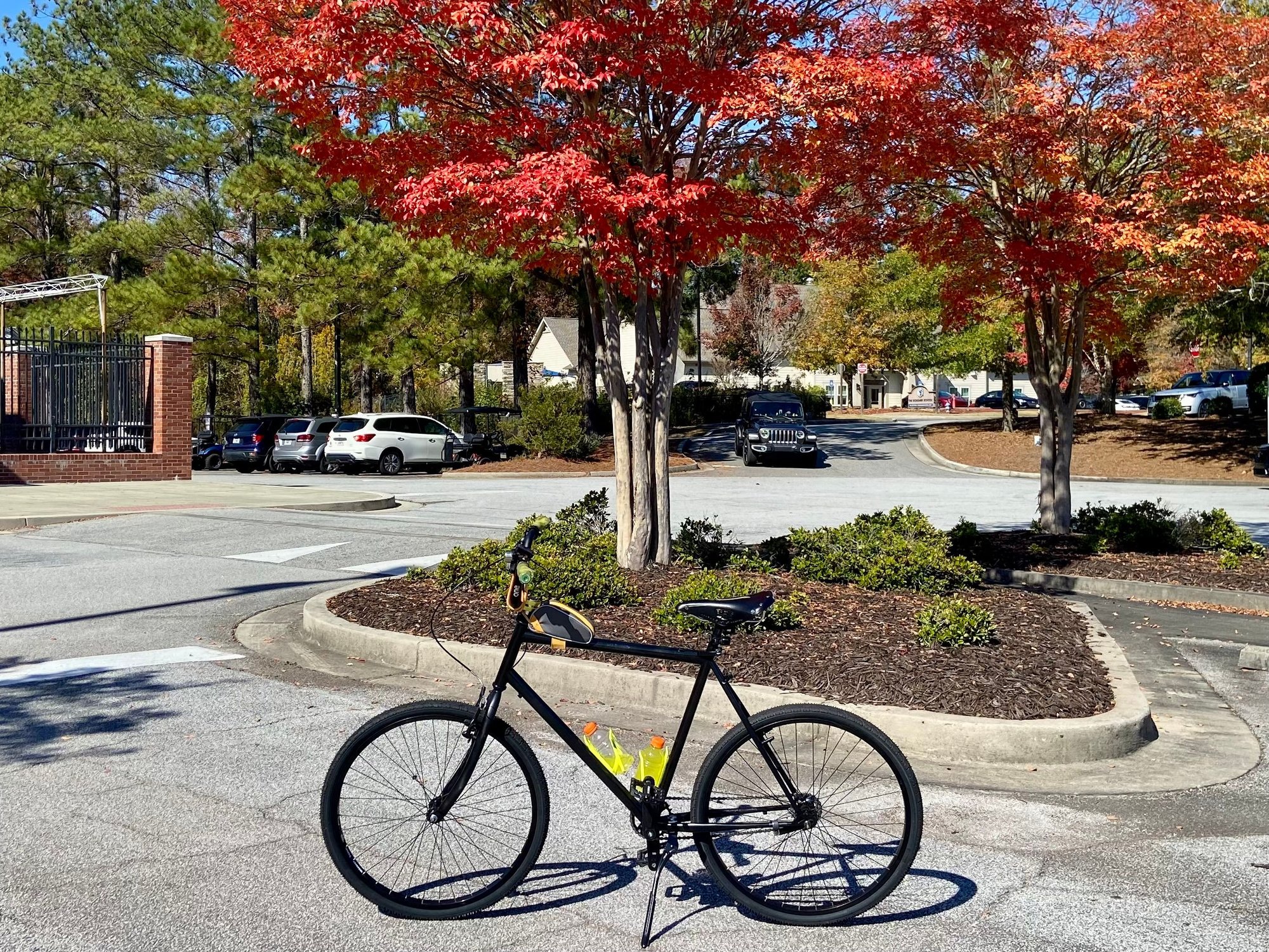 A quick ride before the Dawg game on my red/black game day bike .