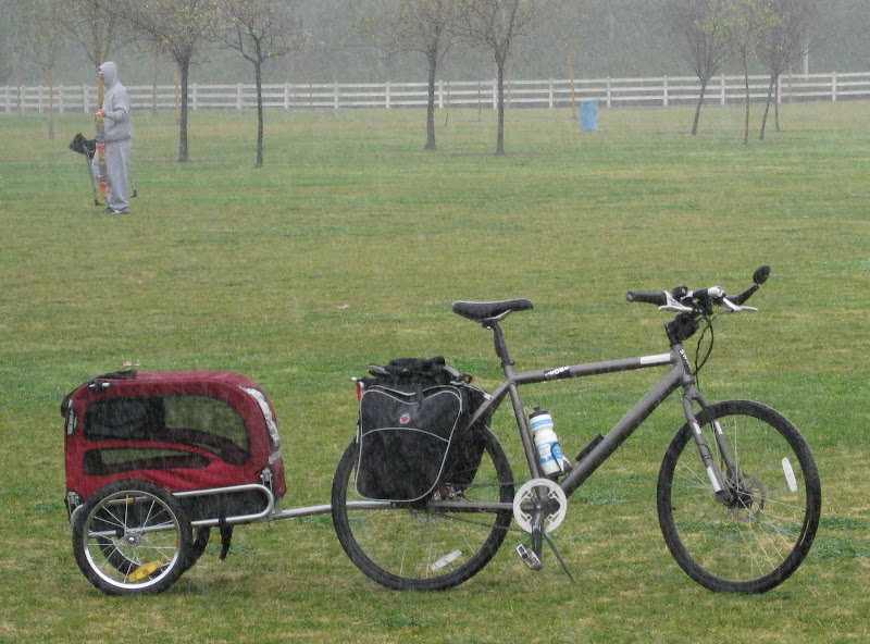 Swobo Dixon doing dog-pull duty in the rain. It weighs a ton but gets the job done. My daily commuter. I'm actually thinking of selling it and going with a SS Motobecane. |