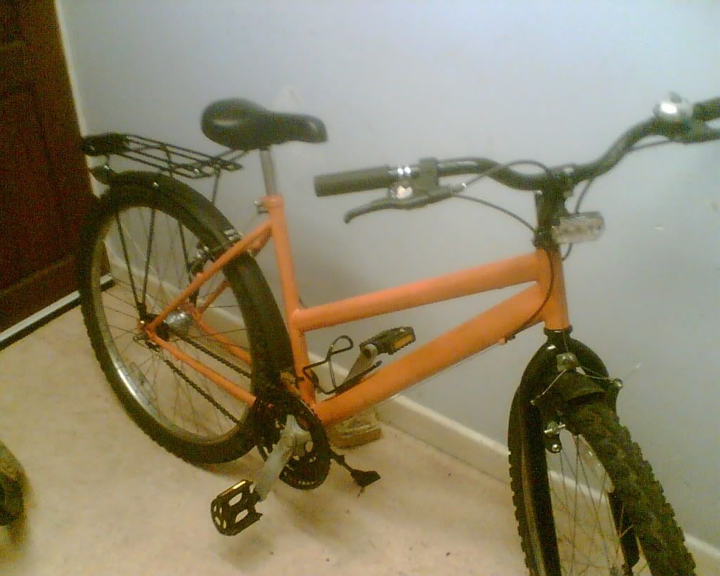 Here's my orange bike after it's rescue from the dump, repaint and repair: