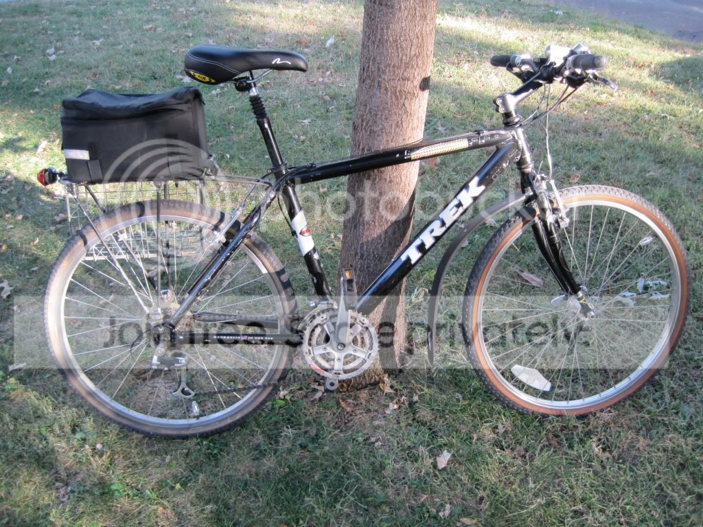 Here is my commuter during a weekend errand with a trailer. Build up around a Nashbar 18" MTB frame. Large picture