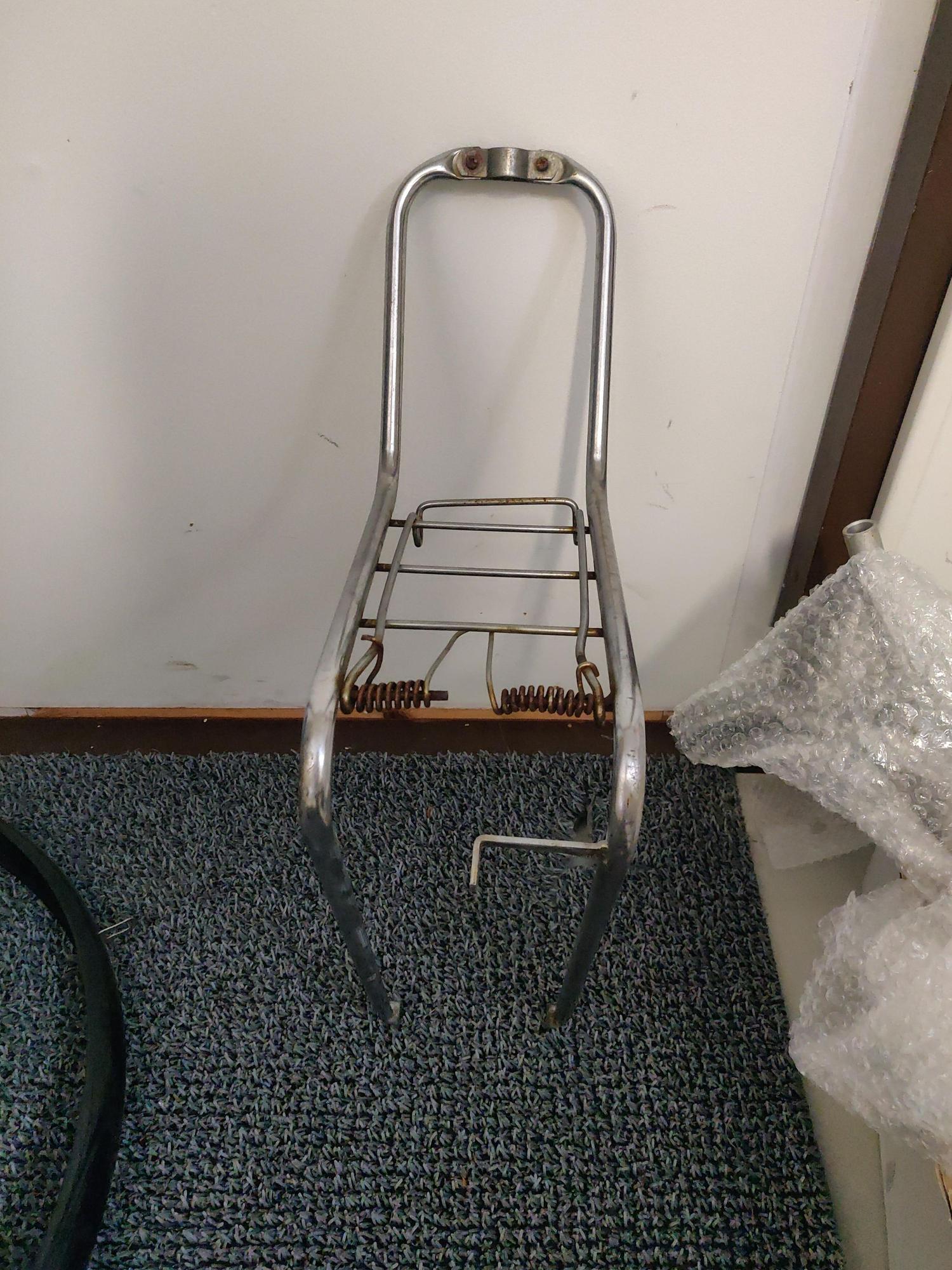 A front rack that needs some rust removal and shining. This is a whole lot bulkier and heavier than the ones the French usually fitted their randonneurs with, so I'm not sure if it'll stay