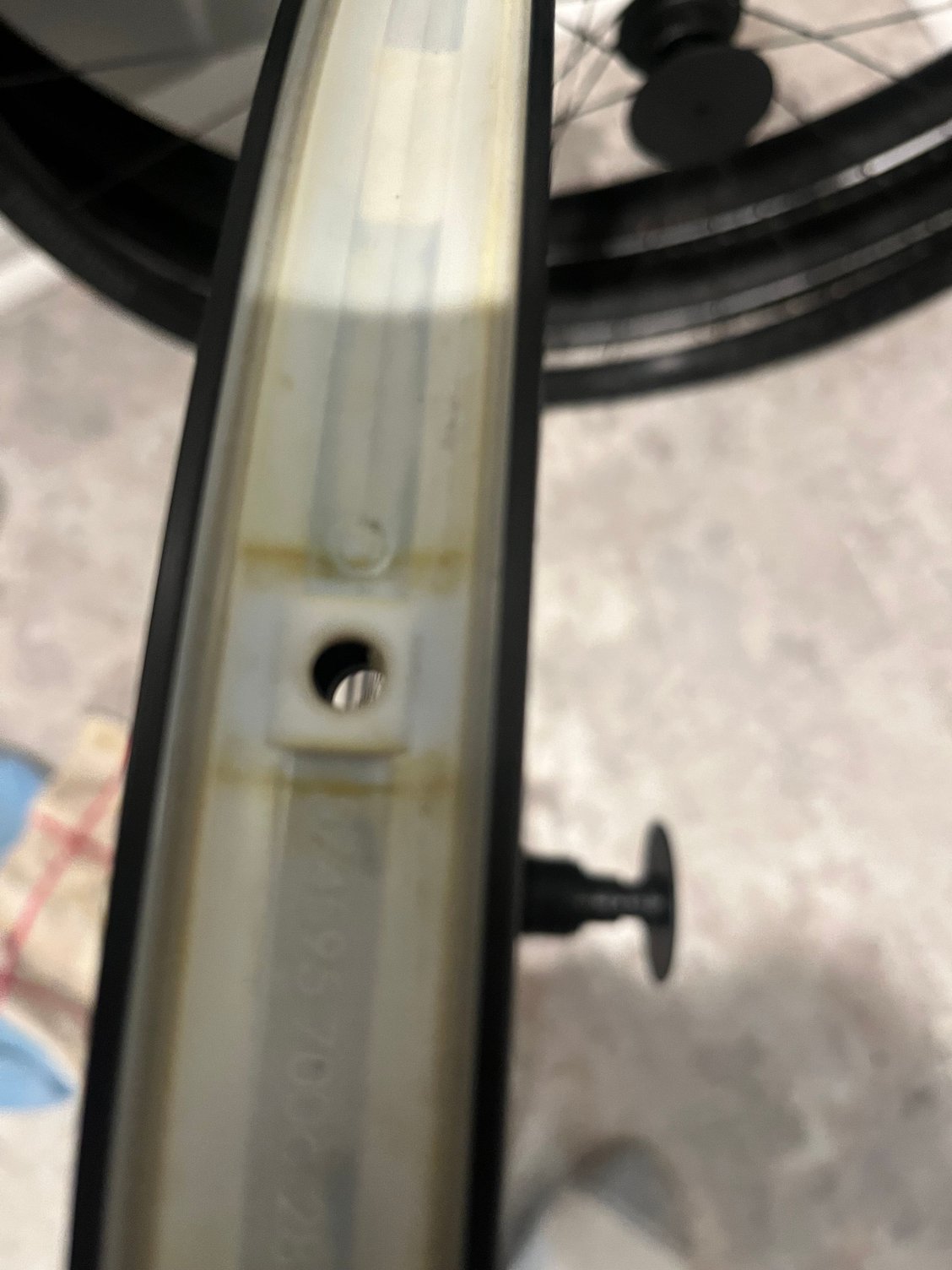 - Ensure that the hole's dimensions are compatible with the passage of the tubeless tape and do not jeopardize the rim strip's sealing efficacy or structural integrity.
