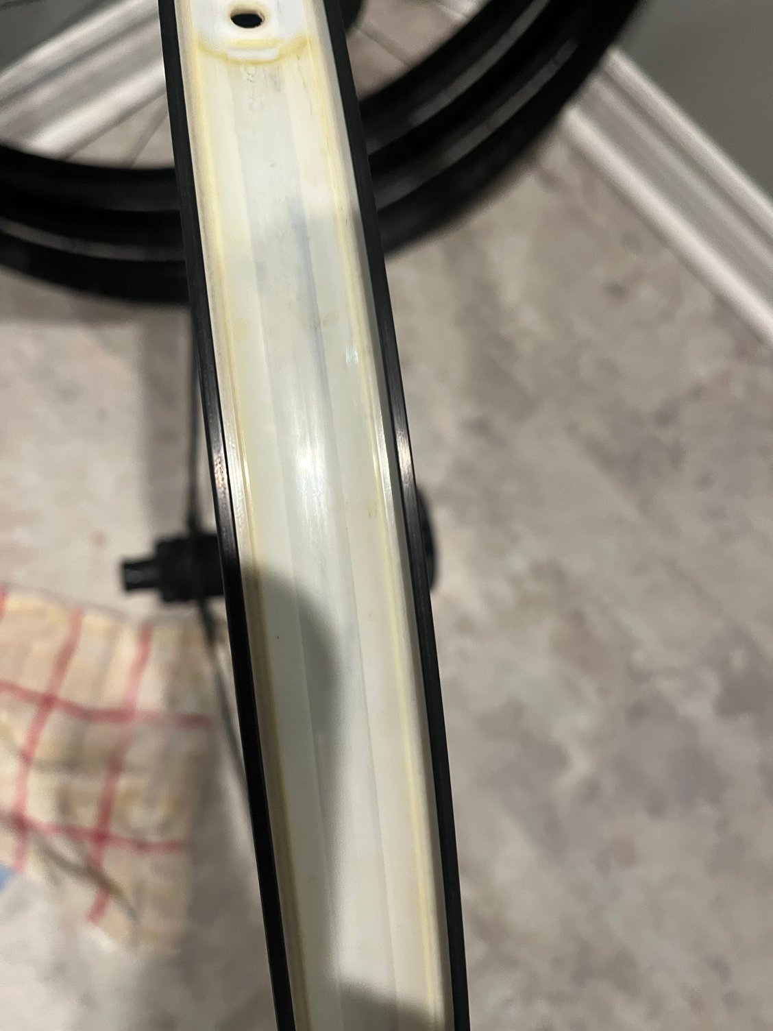 Did you find an end to the tape yet? Or is it really just a continuous loop? That would be a new type of tubeless tape. I've always wondered if tubeless tape could be made out of heat-shrink material. You would just have a band of heat shrink material and you snap it onto the rim and heat shrink it to fit all the contours perfectly.