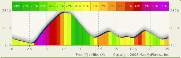 Many, if not most of you, are in big trouble. I've expanded my regular workout loop by 8 miles and 1000 feet of elevation. 25 miles and 2500 feet, it used to be a "weekend ride" because of the effort necessary. I've knocked 20 minutes off the completion time from when I first began the route 2 years ago. Topping out at 2500 feet, it's really scenic, with views of west Los Angeles, the San Fernando valley, and the Pacific ocean.