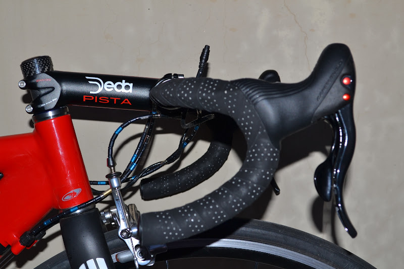 This was spurred by a friend of mine who mentioned my seat seemed to be a little low as we were riding yesterday. To find out if he was right, I raised my seat 2cm and pushed it forward 1cm. My position relative to the bb stayed roughly the same, as did my reach. Overall, the bike felt virtually the same, with the exception of course being my relatively higher seating position. I'll give it a couple more rides and see if anything changes.