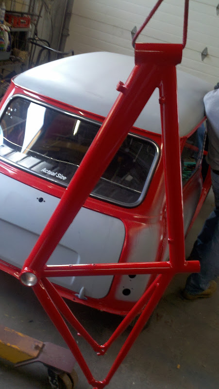 I asked the builder if he could "shorten the stays" on the original bike. He could and did. He got those down to about 39 cm (actually 39.2-39.3 cm). With round tubes he had less room to work with, plus I had clearance issues with the 39 cm stays on the black bike. I had a friend paint the frame when he painted one of his cars. I told him whatever color he was painting his car was fine. Ended up red. He has six? Minis and this was the 4th one he was restoring.