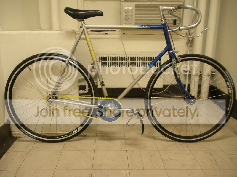My fixed gear ride's frame is from a 1984 World Sport, which I pulled out of a dumpster. If all you're after is the frame (and a presume the fork, headset, etc), $120 isn't a bad price if it's good condition. In retrospect I'd pay that much for the frame I have now. It rides nicely enough, has eyelets for front/rear fenders, and can take a water bottle cage/pump mount on the down tube.Originally Posted by dadsmith