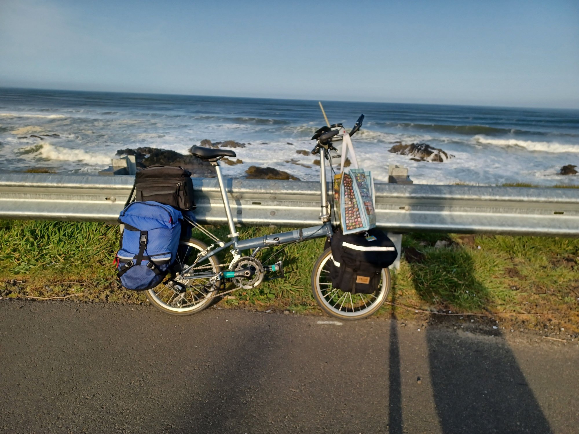 The above setup was first trial, just a one week trip to visit friends via train, no camping gear. Just after conversion from 1X folder to 2X, amazing difference, now 400% range, all added range was low, 50/34 x 11-30 x 20"/406, 21-85 gear inches (I agree, don't need a higher gear, I have just enough to pedal down mild downgrade, steeper and I'll coast), but I may need a touch lower low if touring heavy and long hills. Fat seat tube prevents 3X crank, I'd go with a larger low on the cassette.